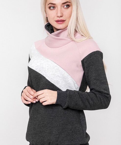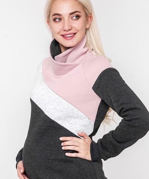 Стильный и теплый свитшот-реглан для беременных и кормящих из трикотажа трехнитка с начесом. Сочетание трех цветов ткани и ассиметрия делают его очень оригинальным, а очень удобно расположенные молнии секретов для кормления — комфортным и универсальным. В комплект можно приобрести брючки Taya Warm.