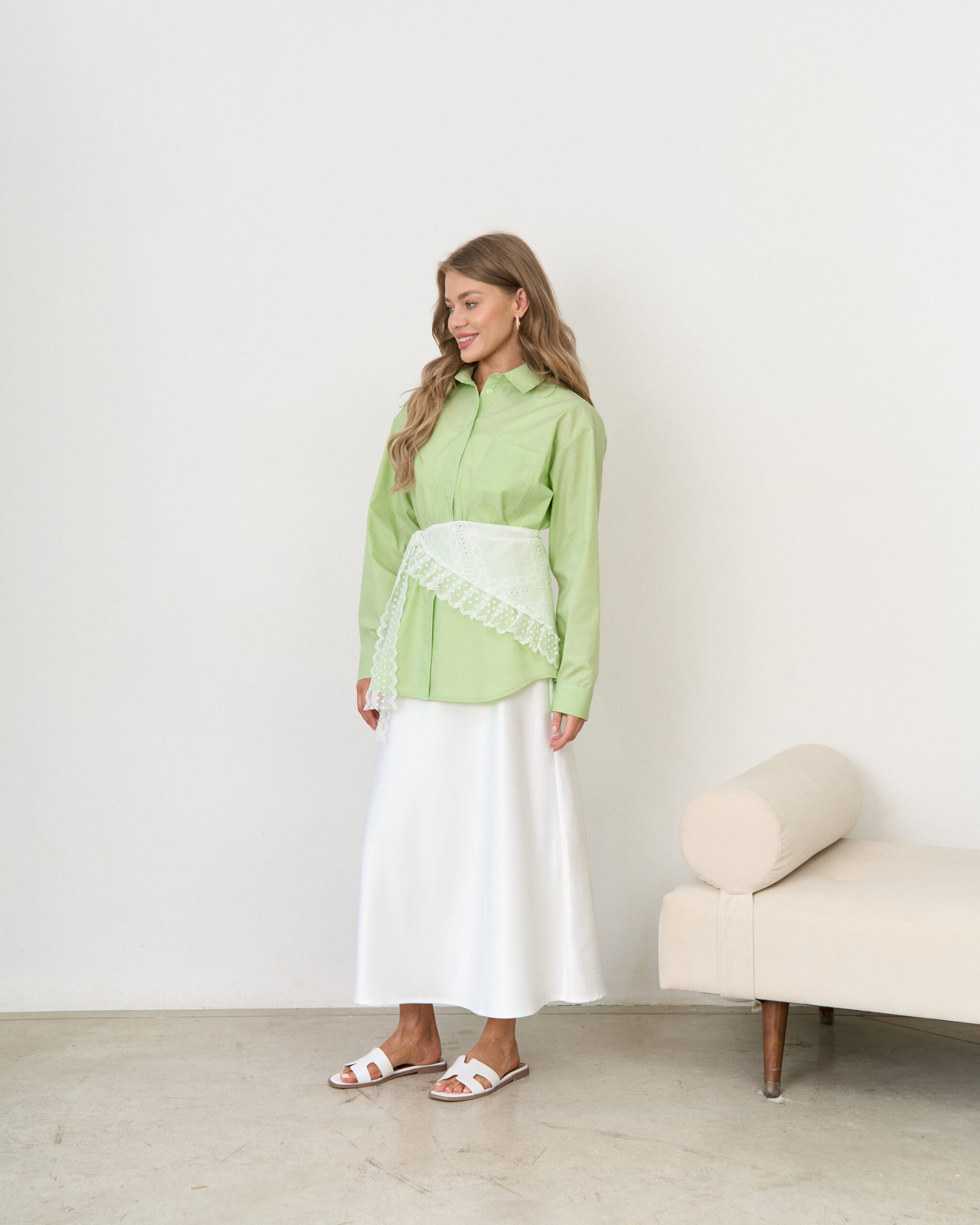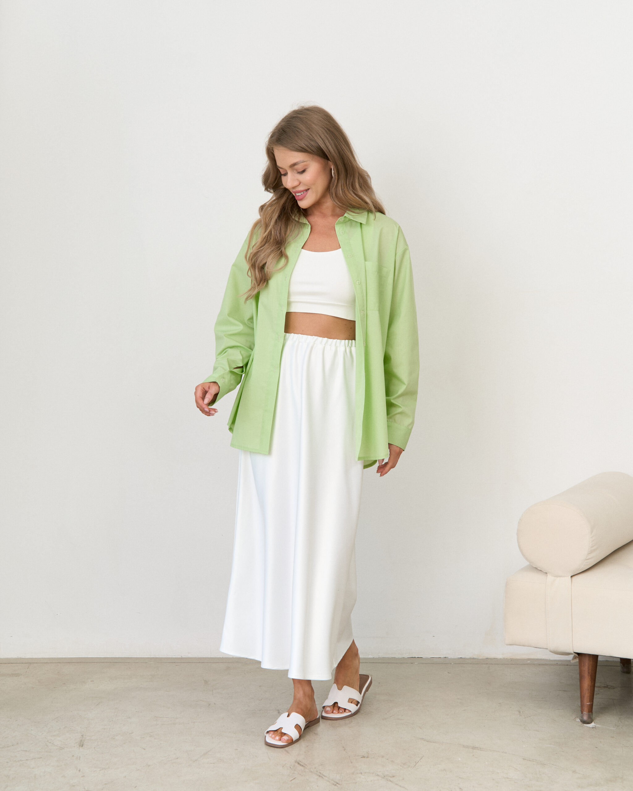 Хлопковая оверсайз-рубашка в цвете лайм Clea
