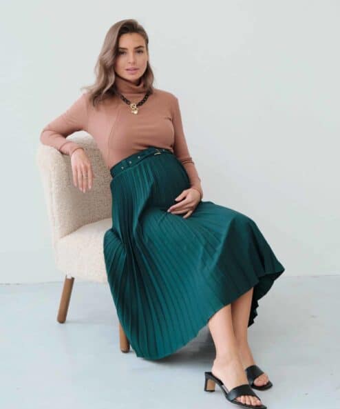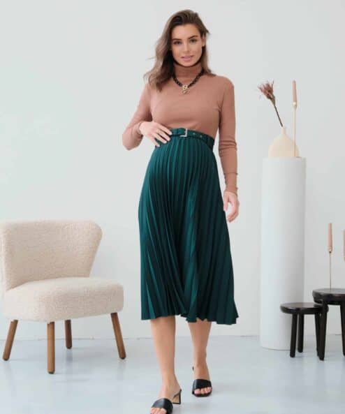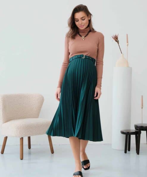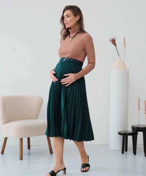 Стильная юбка-плиссе, которая подойдет на весь срок беременности и после. Пояс выполнен в виде комфортной резинки и дополнен шлевками, чтобы вы могли носить юбку с любимым ремнем. Материал юбки позволит надевать ее в любое время года, а базовый цвет — создавать большое число комплектов на каждый день и на выход.