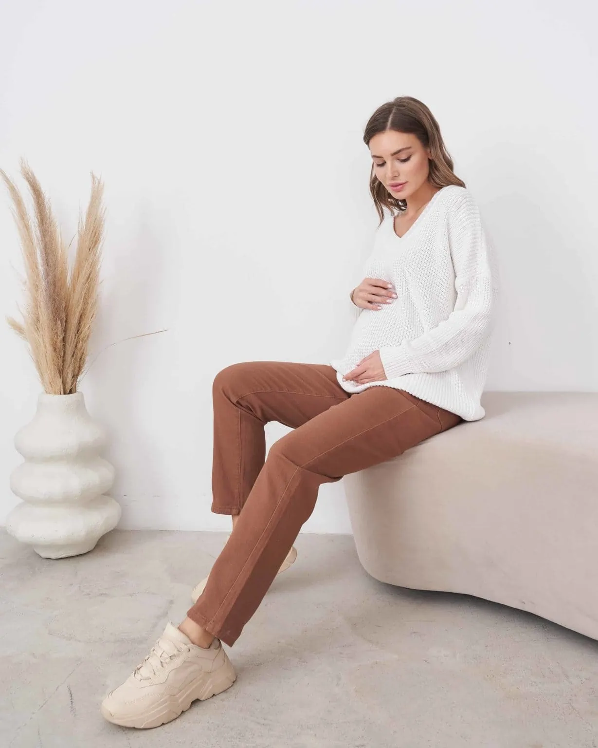 Данная модель джинсов для беременных выполнена с прорезными карманами, высоким бандажным поясом и тонким флисовым начесом изнутри. Облегающий фасон и зауженный крой — стильный вариант для будущих мам, который непременно станет вашим фаворитом в осенне-зимнем сезоне.
