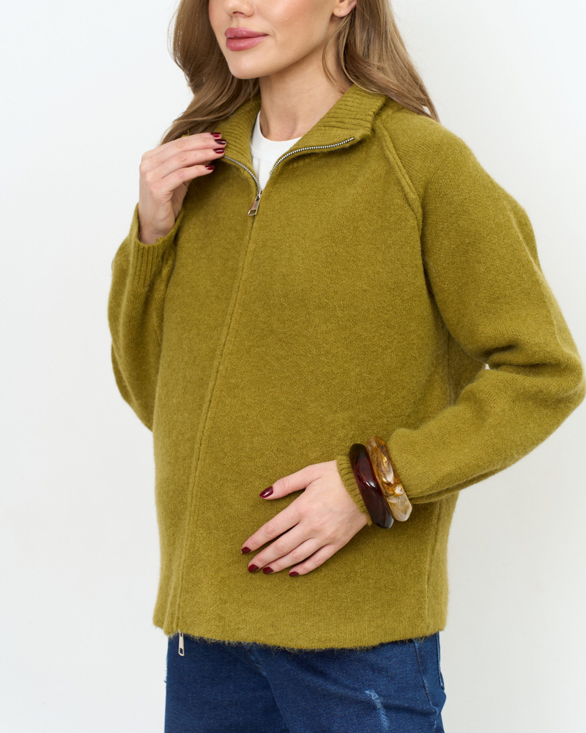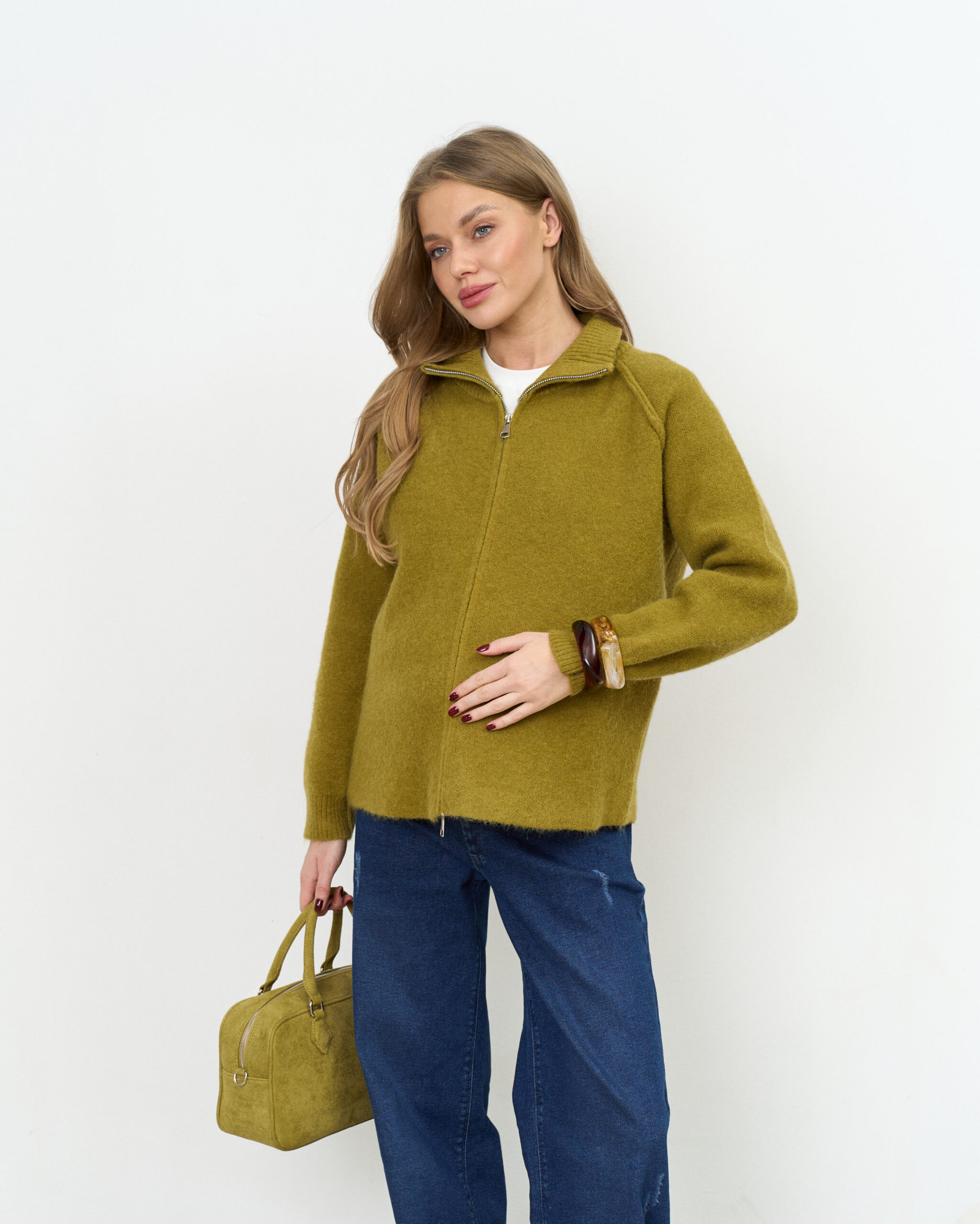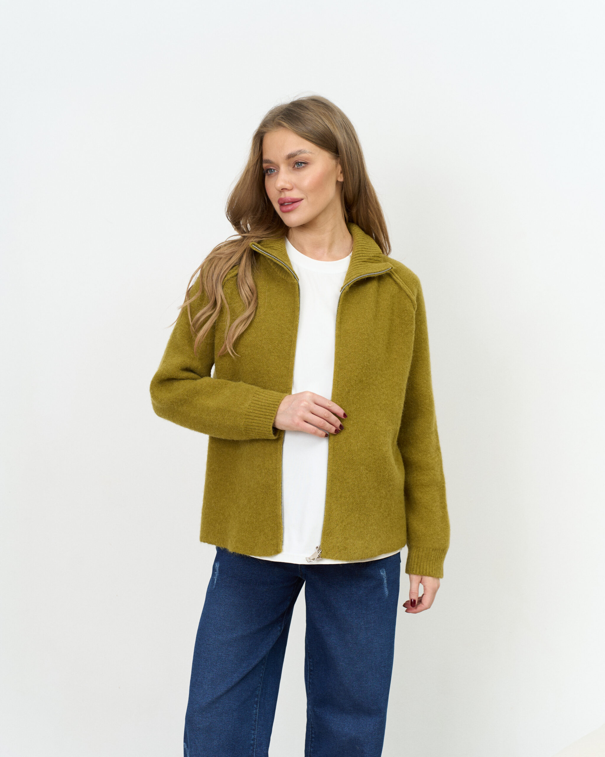 Оливковый кардиган на молнии Alpes