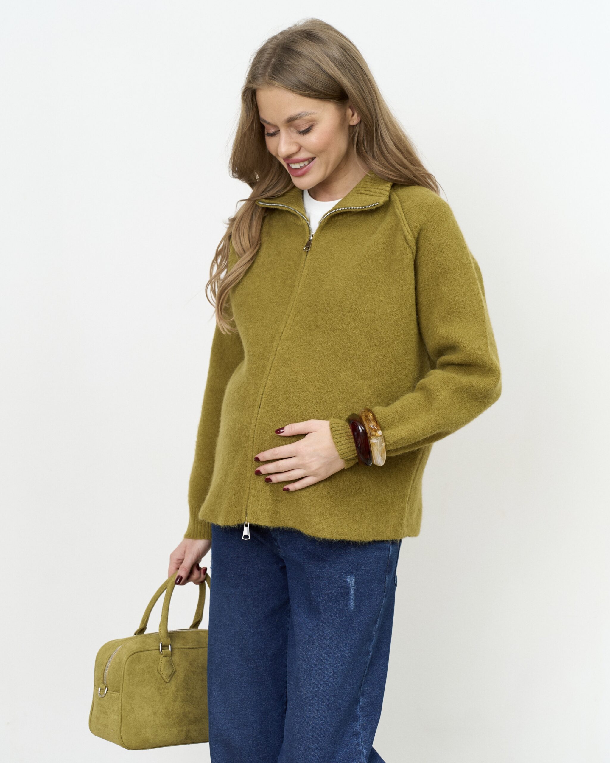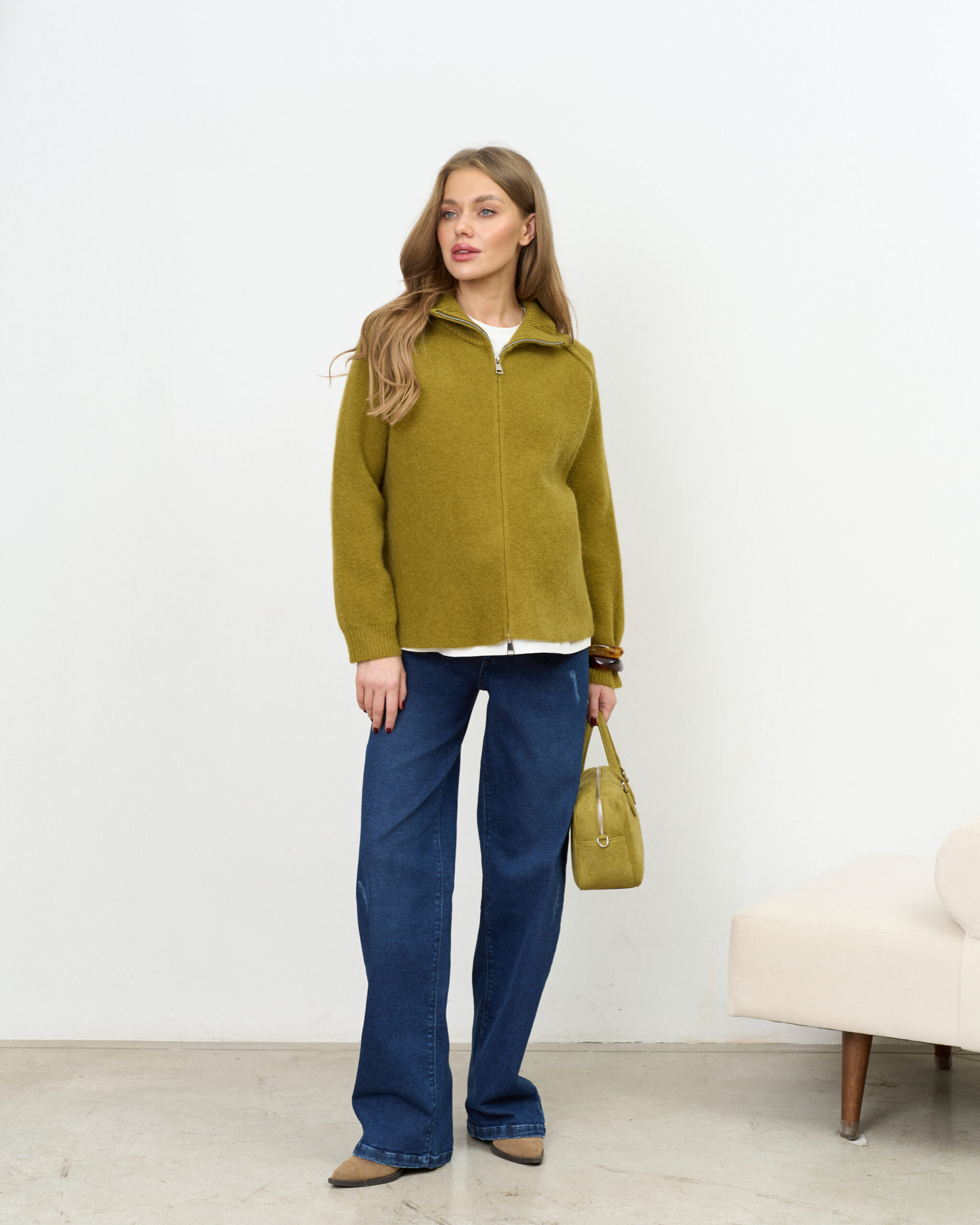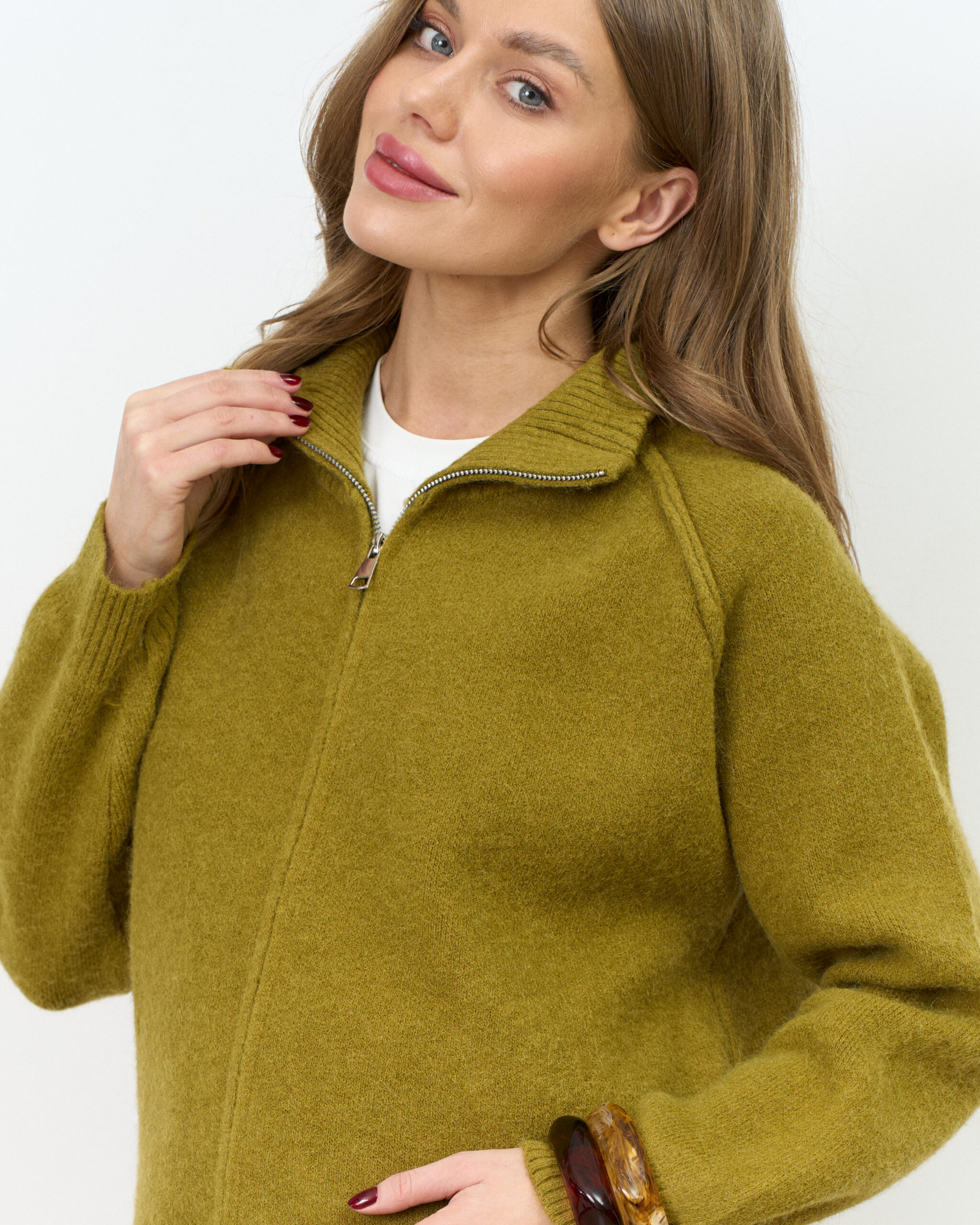 Оливковый кардиган на молнии Alpes