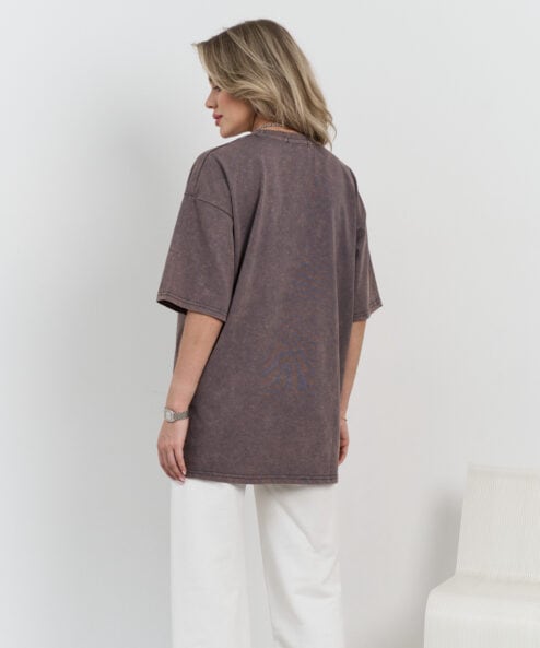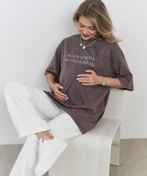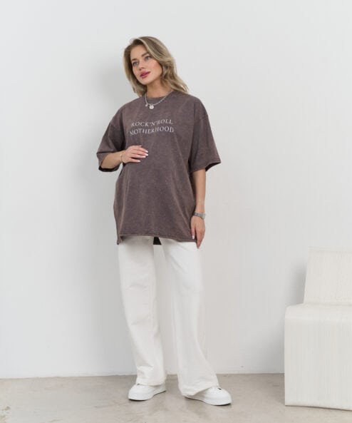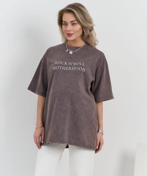 Базовая оверсайз футболка из актуального, вареного хлопка с принтом «Rock-n-roll Motherhood».