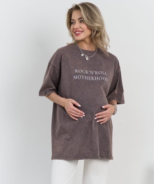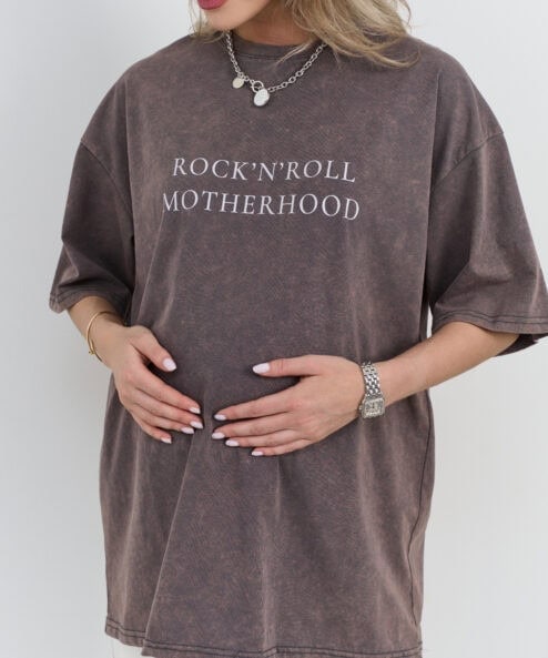Кофейная футболка из вареного хлопка Rock-n-roll Motherhood