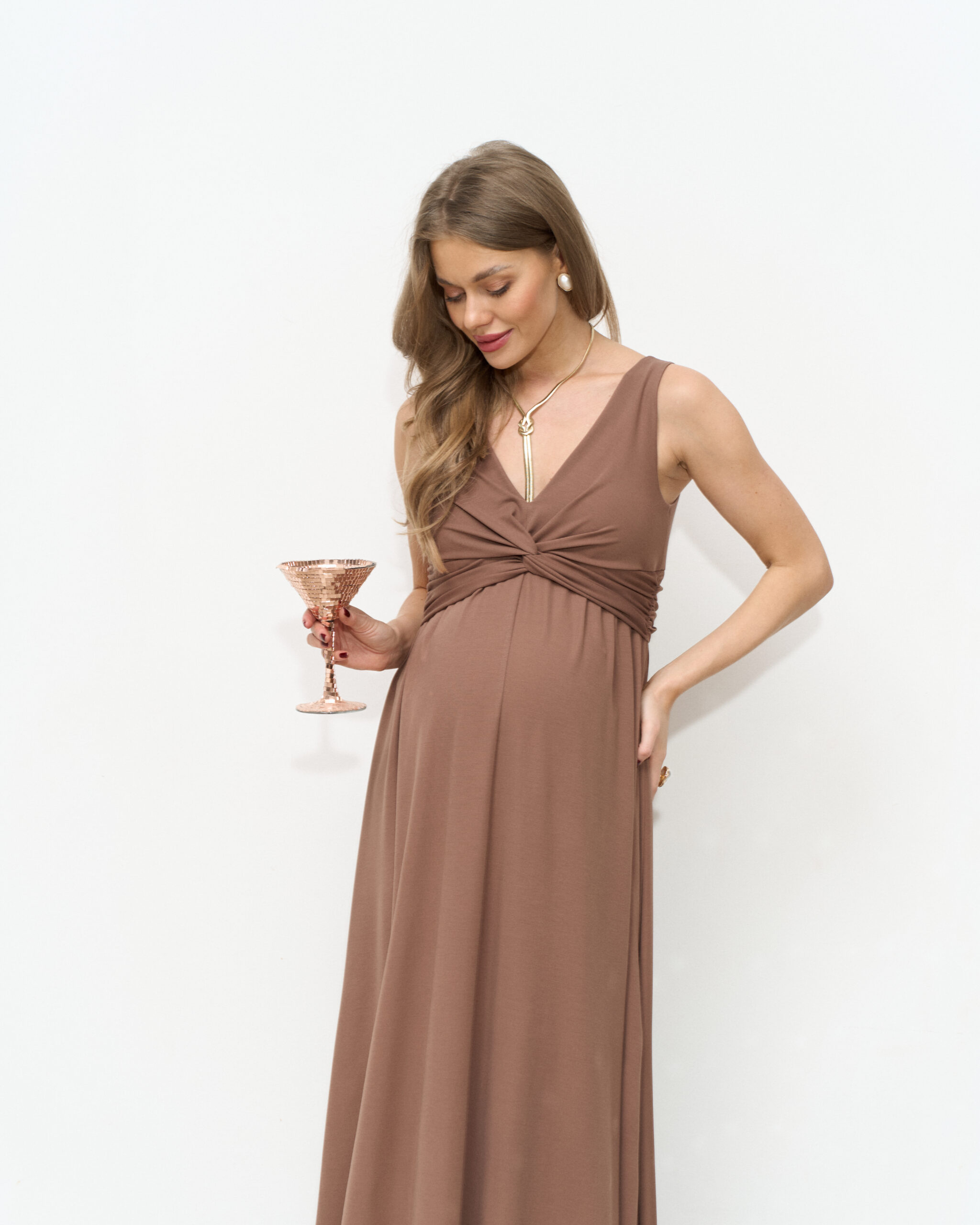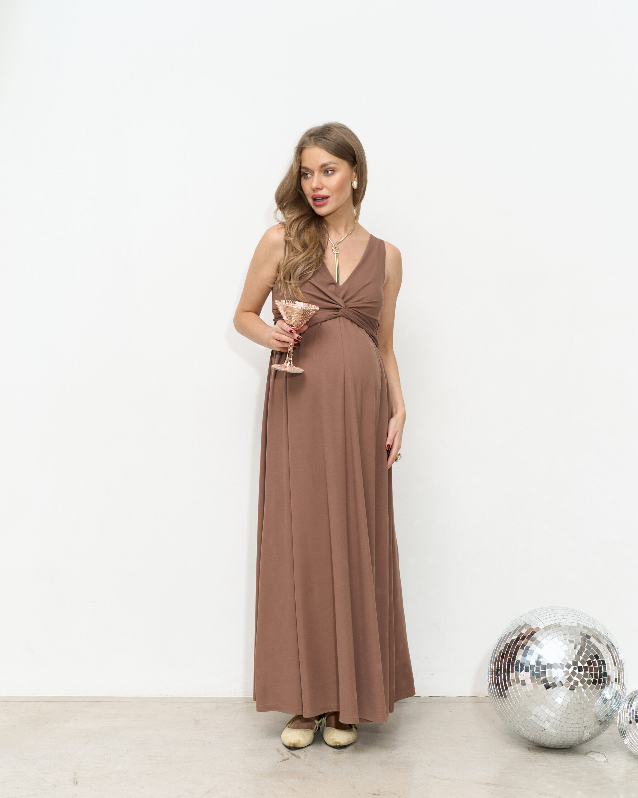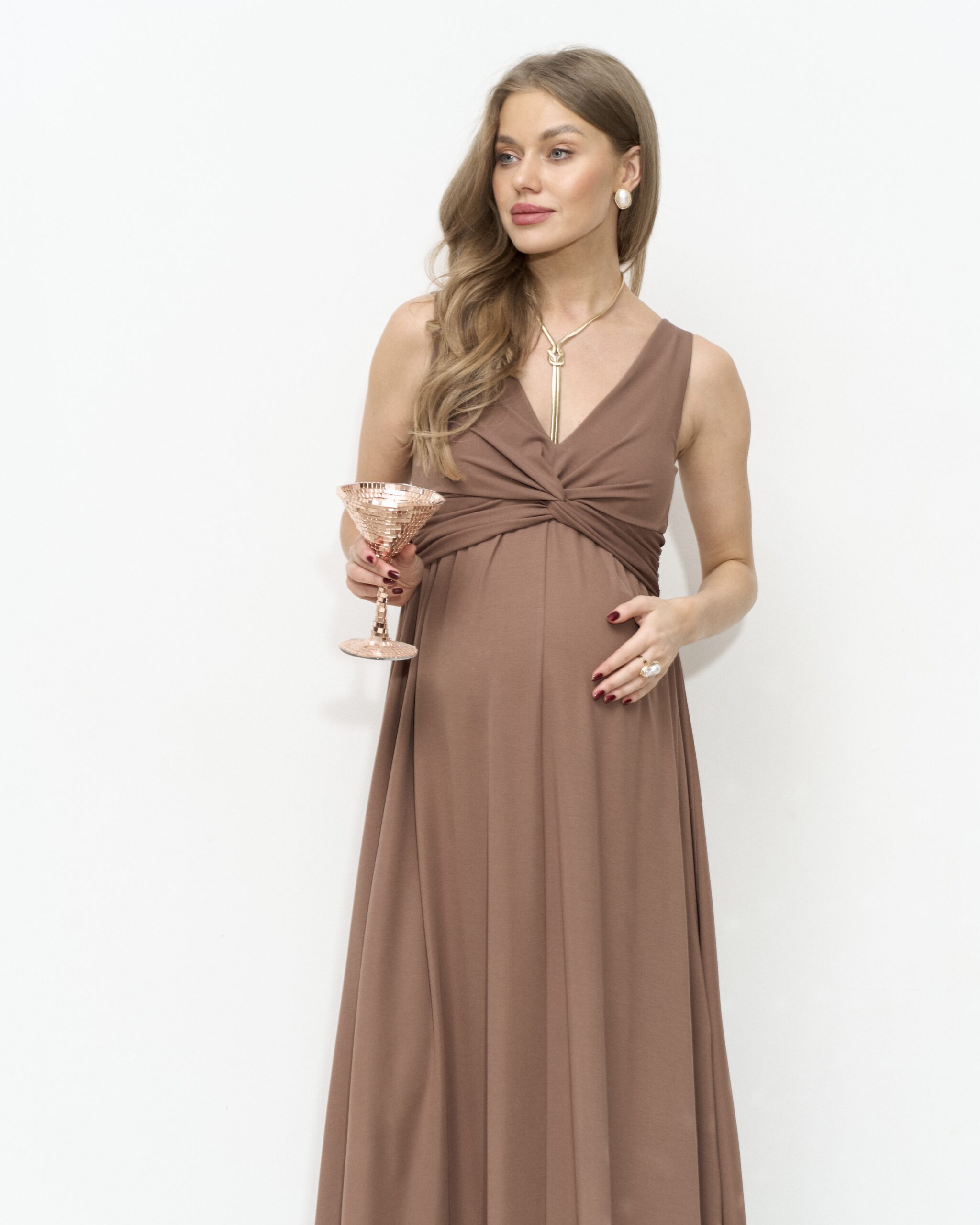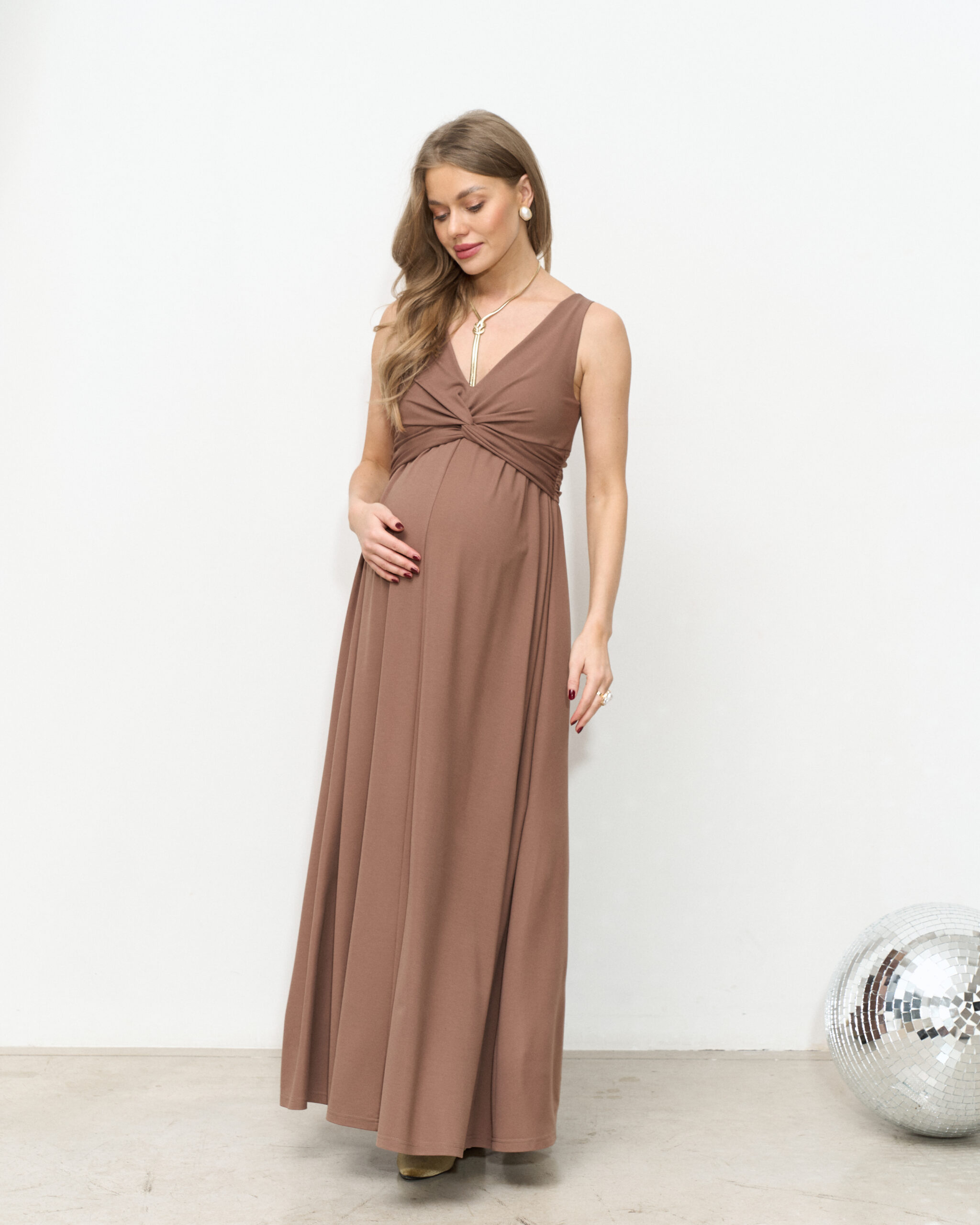 Шоколадное макси платье для будущих мам Dream