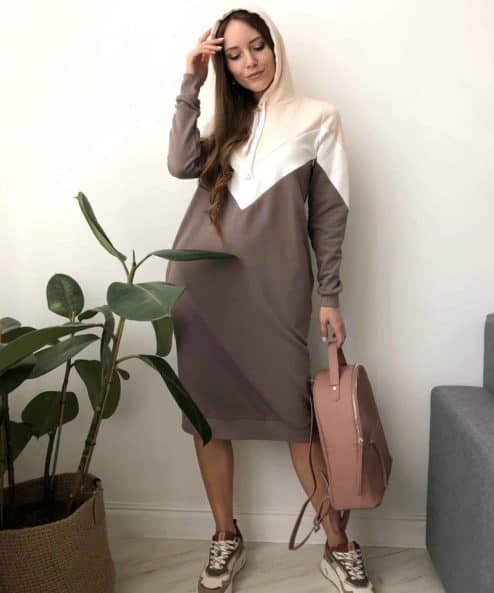 Удобное повседневное платье из мягкого хлопка – отличный выбор для будущих мам. Платье хорошо тянется, не сковывает движений, комфортно носится даже на последних сроках беременности. Такая одежда для беременных прекрасно подойдет для теплого осеннее-весеннего периода, гармонично впишется в уютные образы спорт шик и спорт кэжуал. На уровне груди расположены потайные молнии для удобства кормления, благодаря чему модель будет актуальной даже после родов.