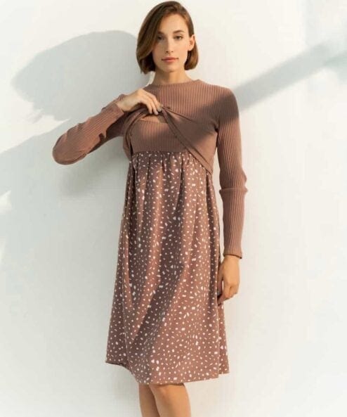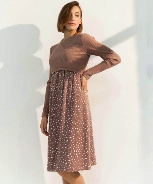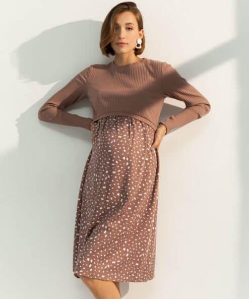 Кофейное платье для будущих и кормящих мам Paula