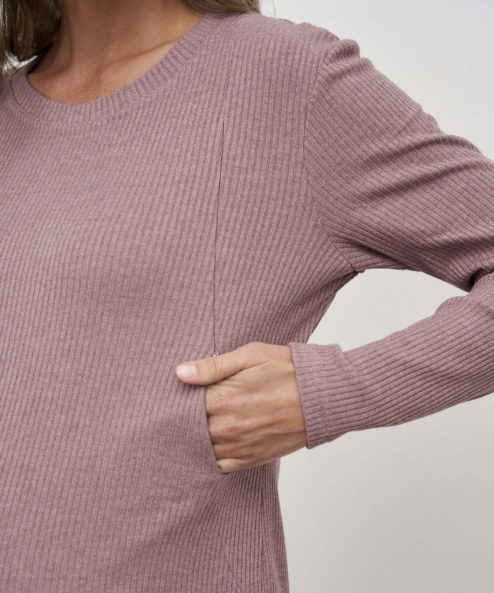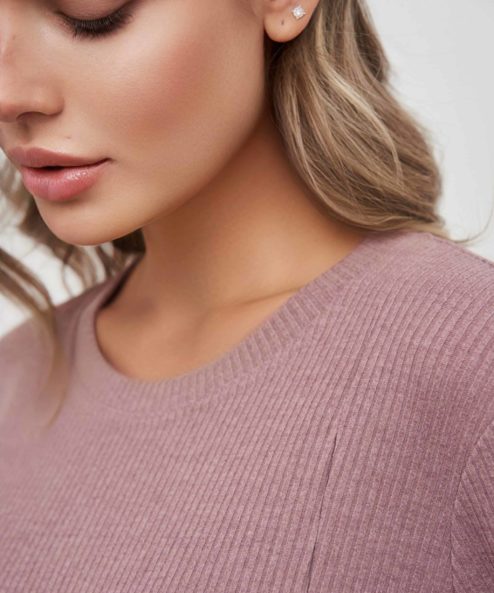 Прилегающий силуэт, разрез сзади, рельефная структура ткани, маленький секрет, спрятанный в нагрудных молниях обеспечат вам комфорт кормления и стильный внешний вид.