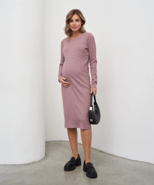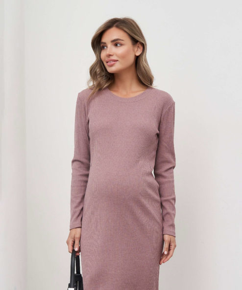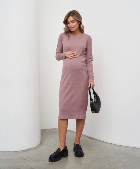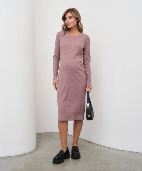 Платье для беременных и кормящих мам облегающего фасона из трикотажа в рубчик.