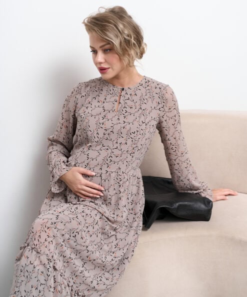 Кофейное платье с принтом для будущих и кормящих мам Valencia
