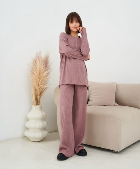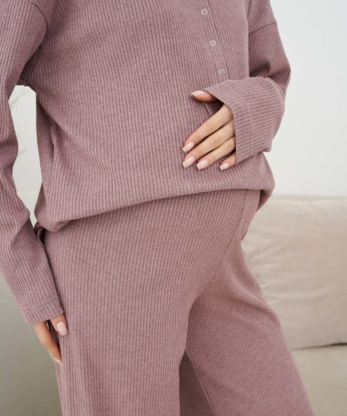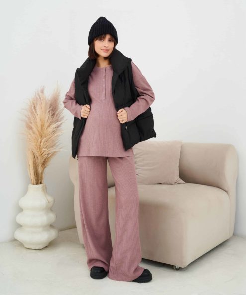 Брюки свободного кроя из трикотажа в рубчик, которые подойдут на весь срок беременности и после. В комплект к брюкам можете приобрести джемпер Kardy