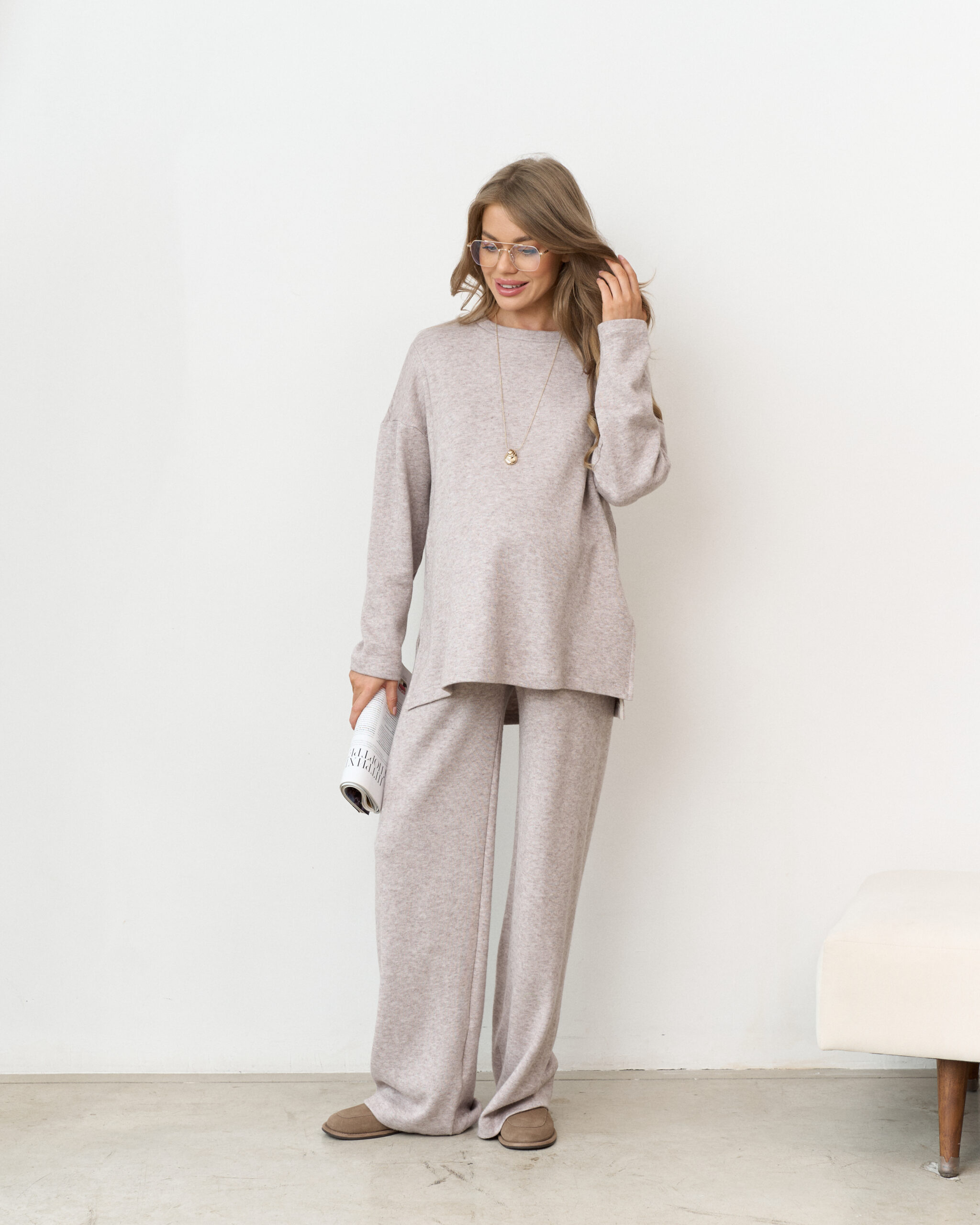 Теплые трендовые брюки для беременных мам из вязаного трикотажа. Они подчеркнёт вашу фигуру и подойдут на любом сроке беременности и после. А теплая ткань подарит вам максимум комфорта от ежедневного использования.