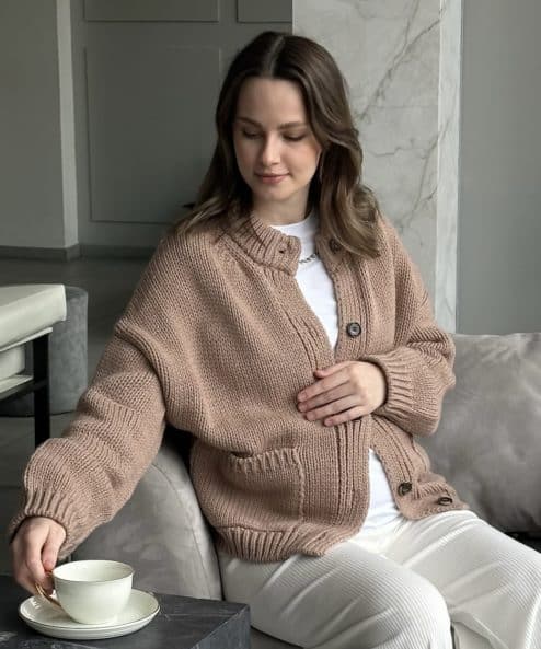 Кардиган крупной вязки с карманами. Свободный крой. Прекрасно подойдет в качестве жакета или, как отдельный элемент одежды.