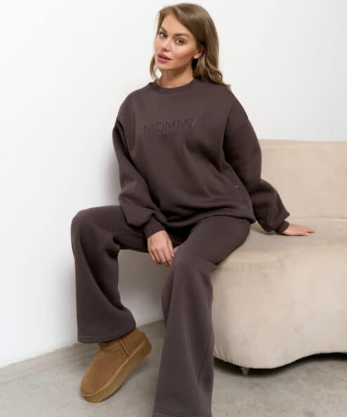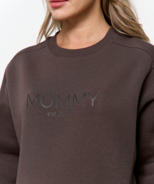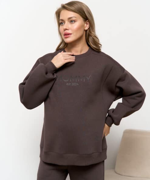 Кофейный теплый свитшот для будущих и кормящих мам MOMMY est 2024