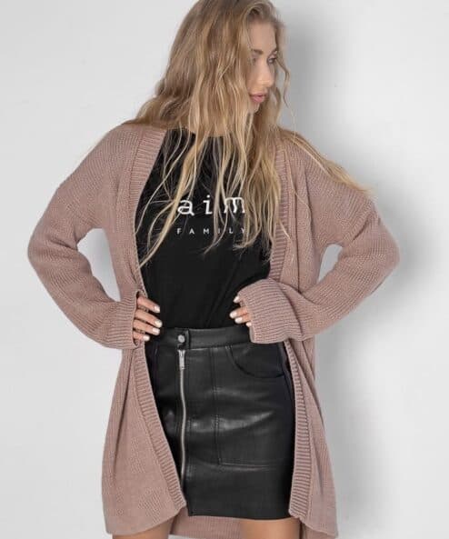 Удлиненный кардиган в стиле «оверсайз» свободного кроя. Легкий, нежный, мягкий — приятный на ощупь. Выполнен из полушерсти мериноса.