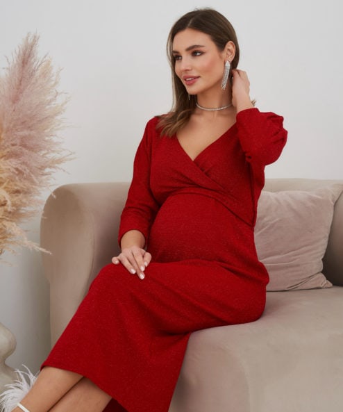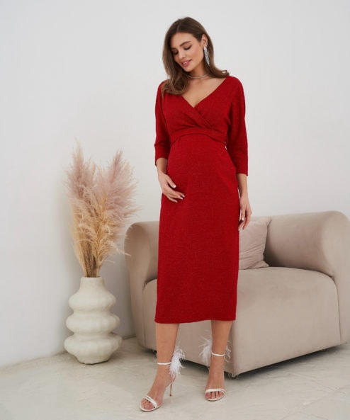 Красное платье с блестками для будущих и кормящих мам Miranda