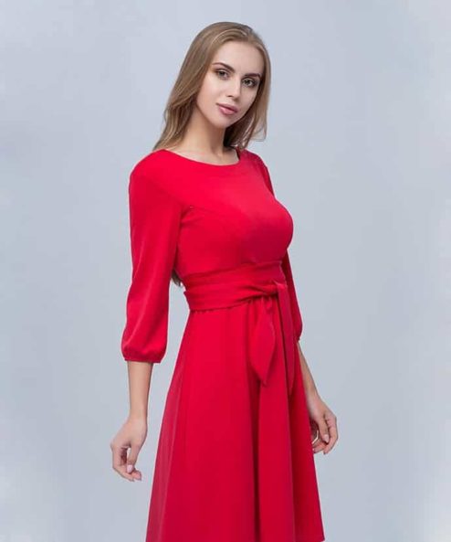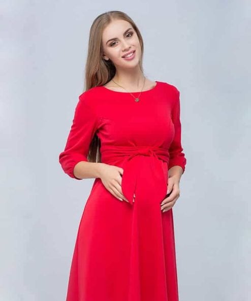 Это женственное платье для беременных и кормящих из трикотажа джерси подарит вам возможность чувствовать себя настоящей леди. Завышенная талия и расширенная юбка будут скрывать ваш животик во время беременности, а после рождения малыша весьма кстати окажутся потайные молнии в рельефах. Спущенное плечо, пышный рукав 3/4, юбка-полусолнце и пояс-кушак — интересные детали фасона при сдержанной цветовой гамме создают элегантный, классический образ.