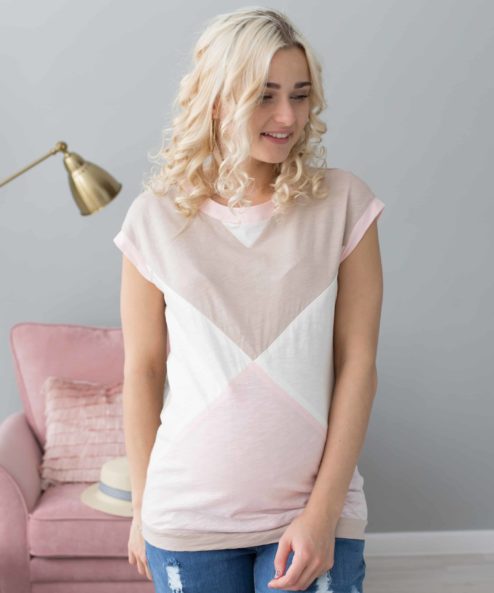 ХИТ СЕЗОНА! Ультрамодная футболка для беременных и кормящих из сочетания трех цветов хлопкового трикотажа фламли. Трендовый color-block так и притягивает взгляд, а секреты для кормления, очень удачно замаскированные в нагрудных рельефах (незаметные потайные молнии), позволят вам легко и незаметно кормить вашего малютку в любом месте и любое время . Под данную модель можно подобрать брючки Active.