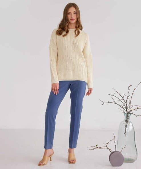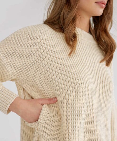 Хлопковый свитер с круглой горловиной и спущенной линией плеч, который подойдет на любой срок беременности и после. Мягкая эластичная вязка и натуральный состав пряжи подарят комфорт в любое время года. А приятные базовые цвета и актуальный крой позволят создать стильные образы. Для кормления малыша предназначены потайные молнии в боковых швах.