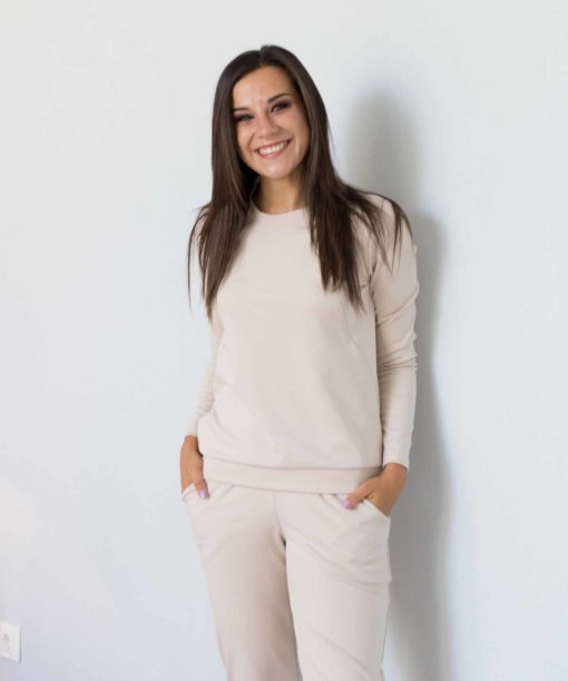 Свитшот для беременных и кормящих мам из приятного к телу материала. Он скроен специально для растущего животика и немного удлинен. Секрет кормления — потайные молнии в нагрудных рельефах свитшота. В комплекте можно приобрести брюки Smart.