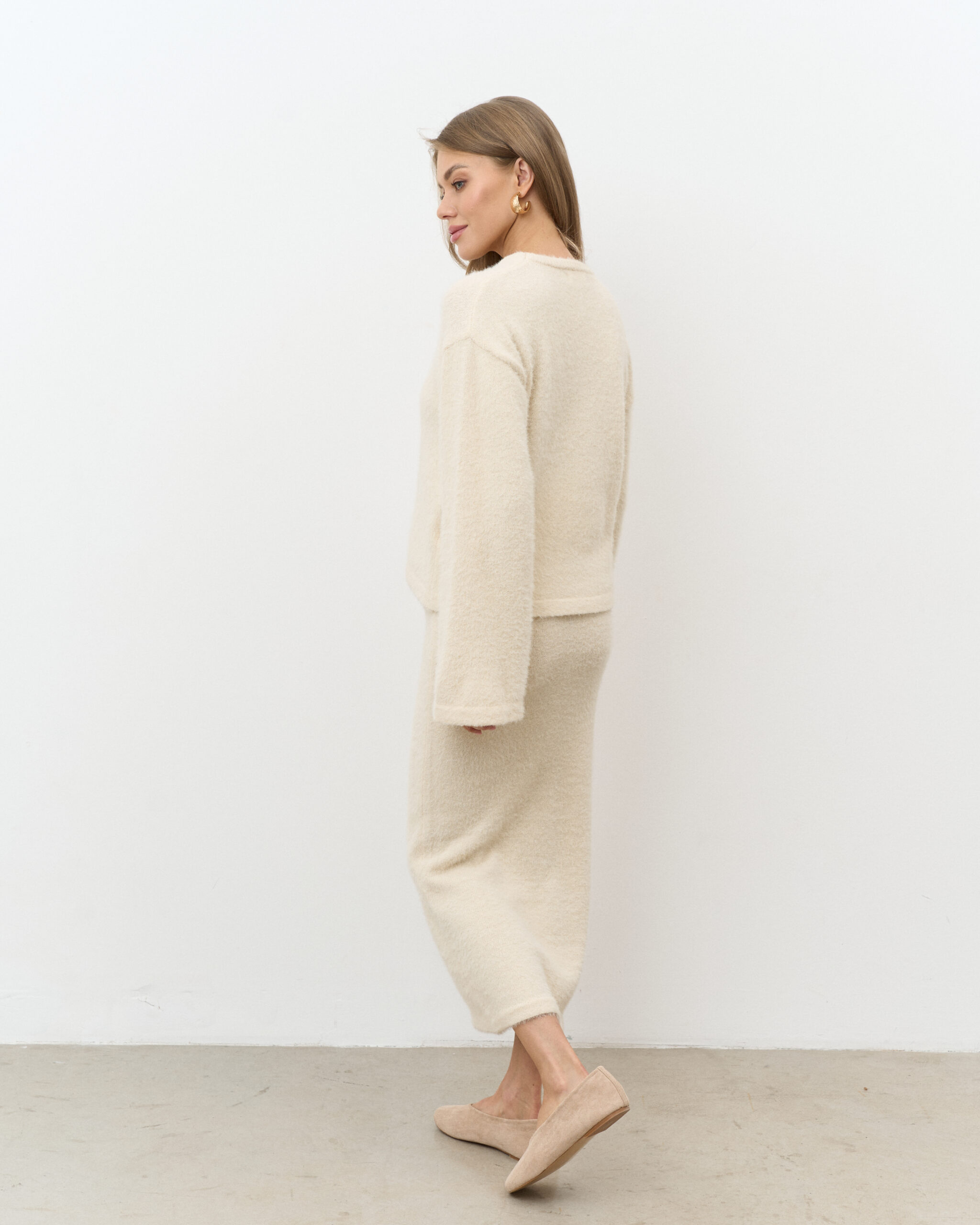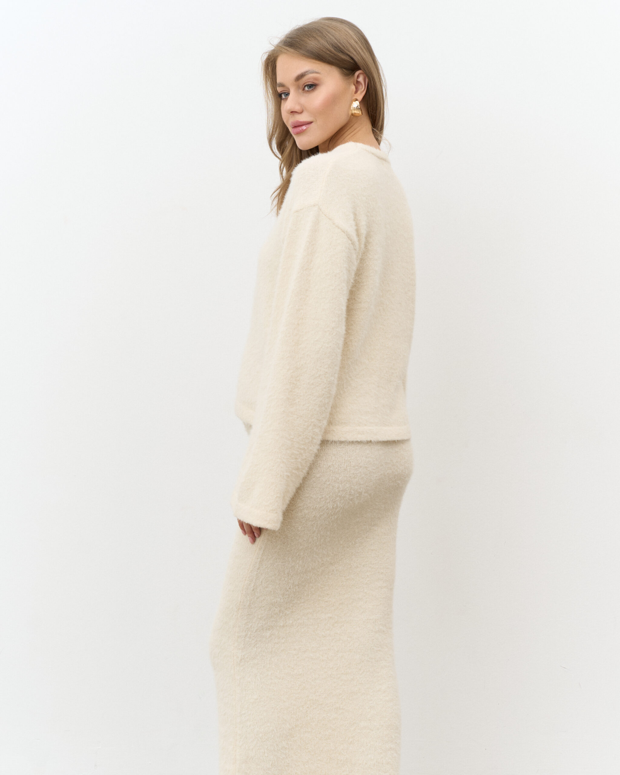 Кремовый трикотажный пушистый комплект Kirsten New