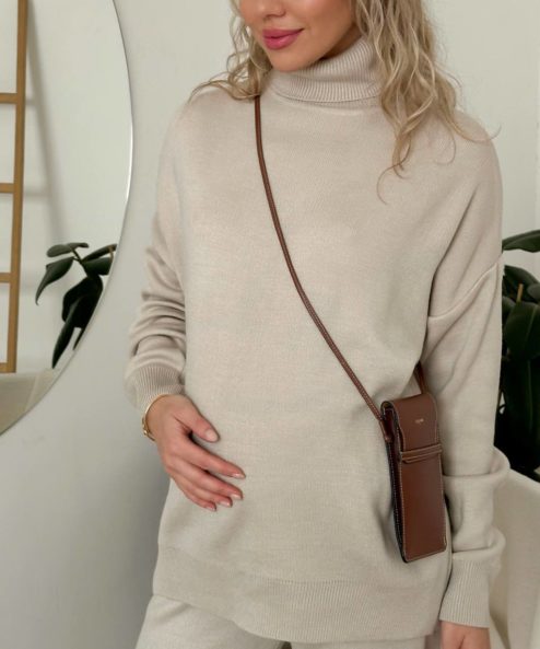 Кремовый вязаный костюм с высоким горлом Flamis