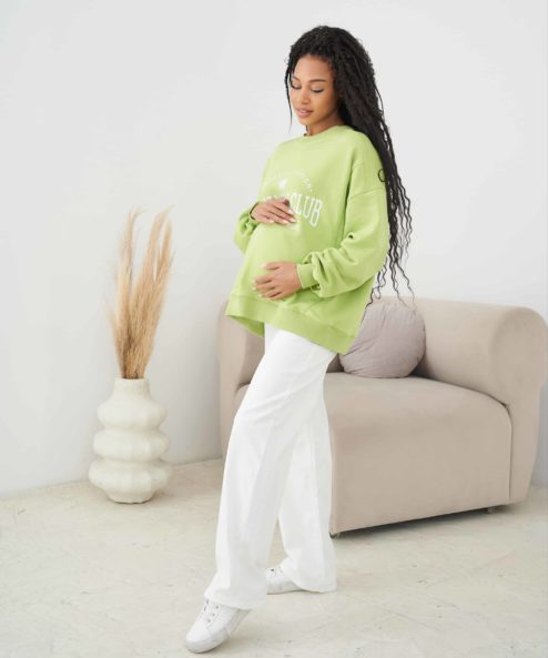 Свитшот из плотного хлопкового трикотажа с петельной изнанкой, который подойдет на весь период беременности и после.
