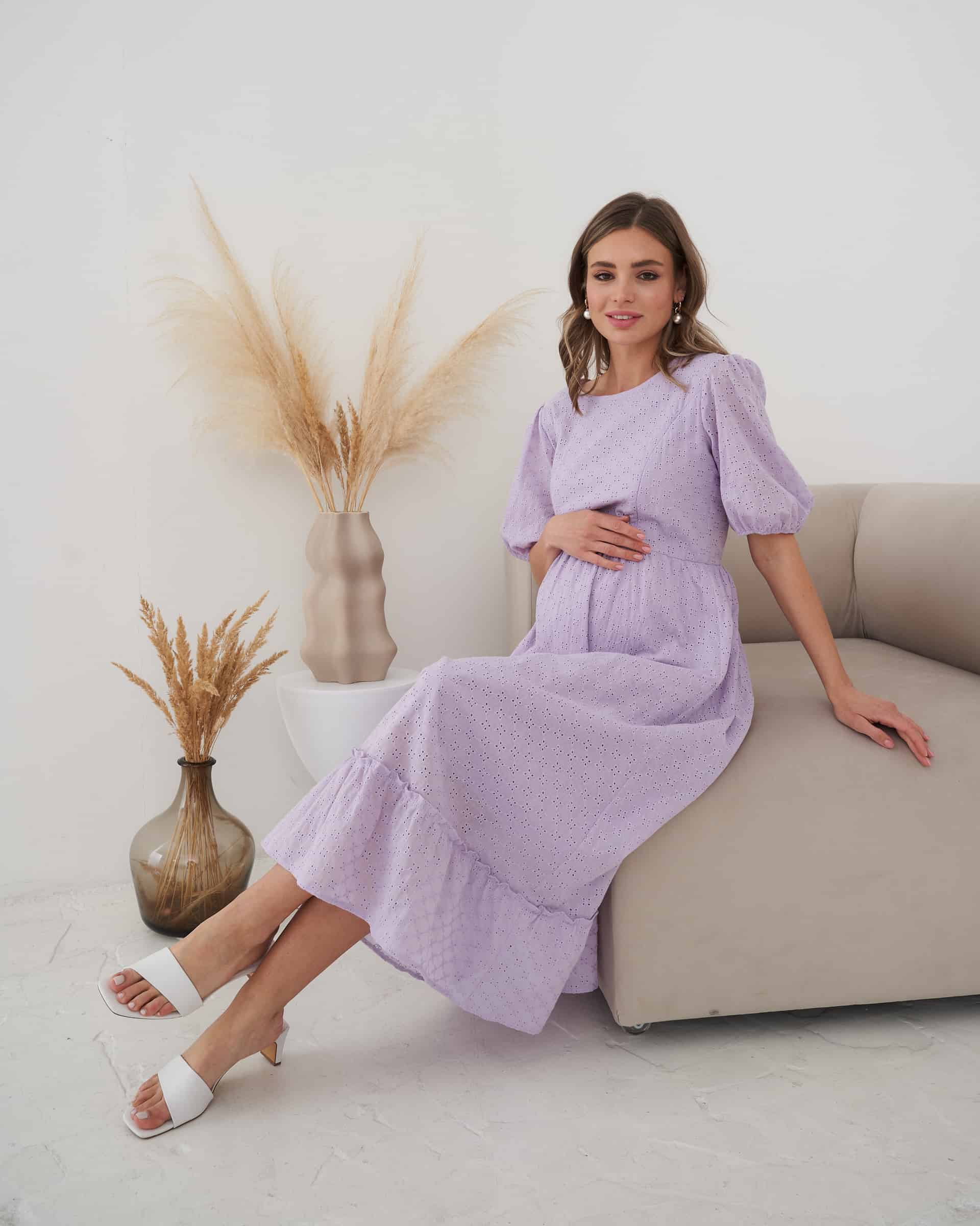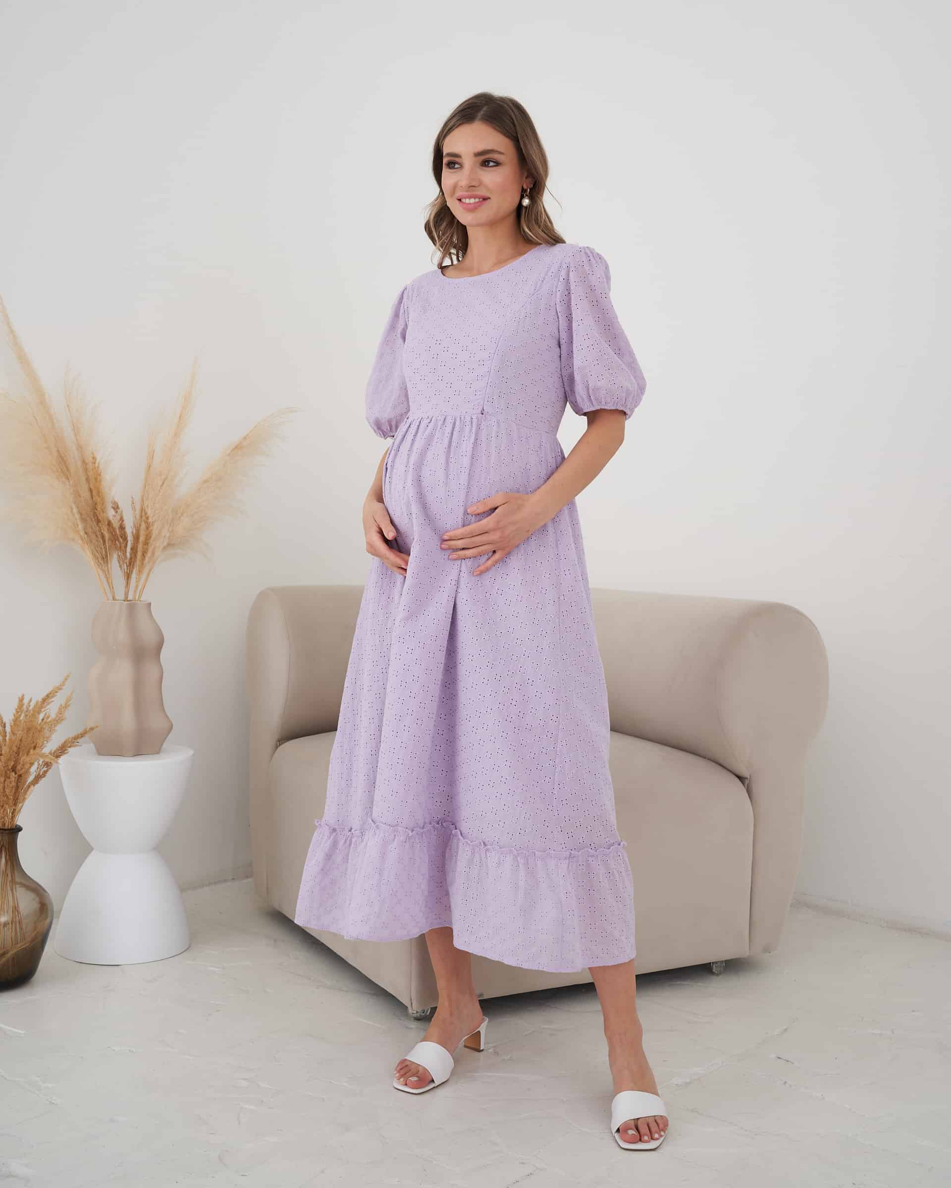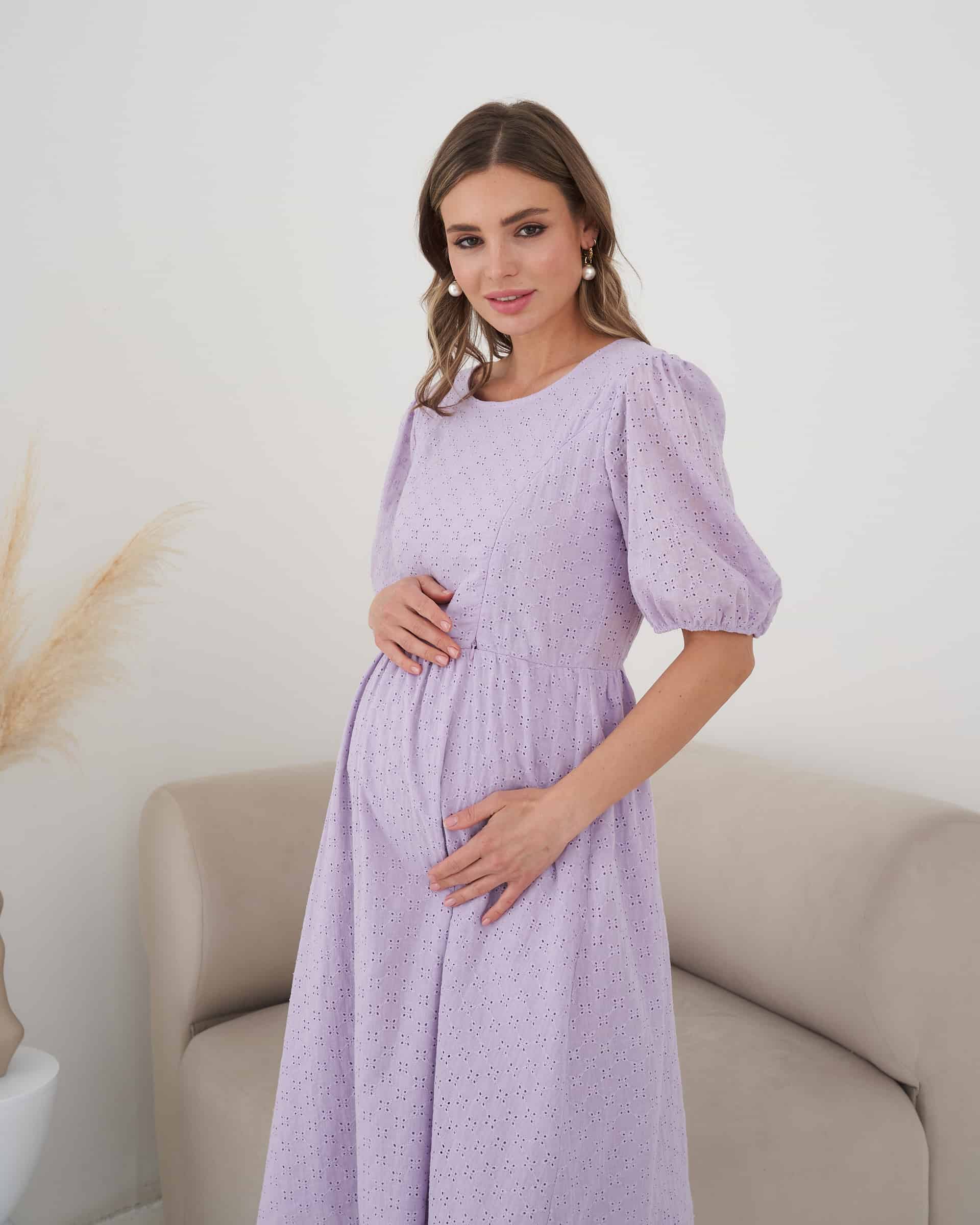Платье длины миди для беременных и кормящих из батиста-прошвы на подкладе. Подойдет на летний период и на весенне-осенний, в сочетании с ботинками и курткой.