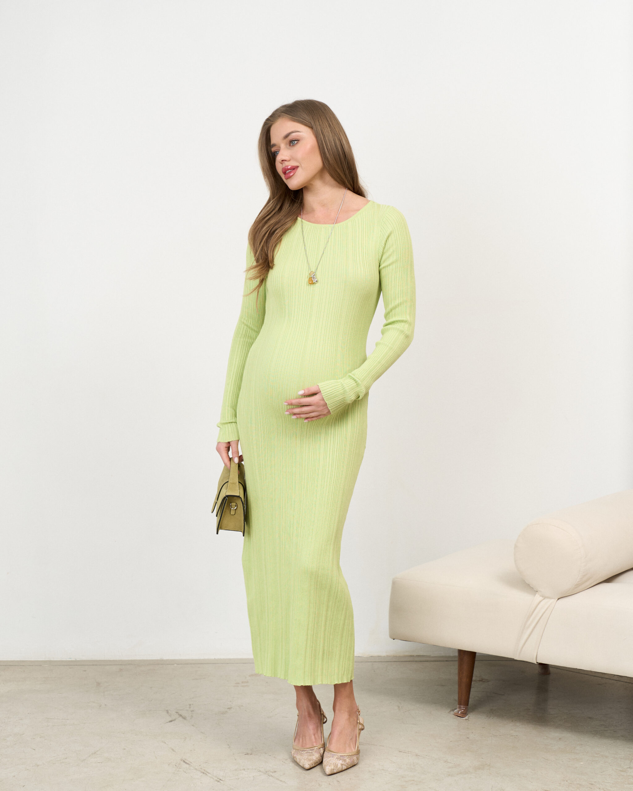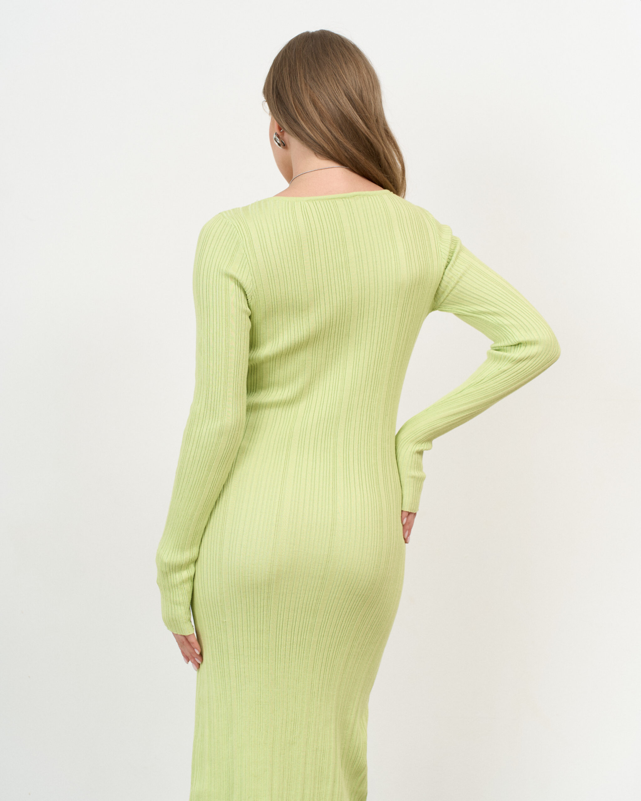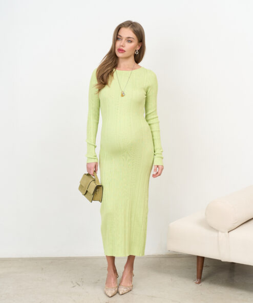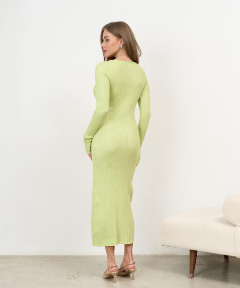 Макси-платье в цвете лайм из ткани в рубчик Everly