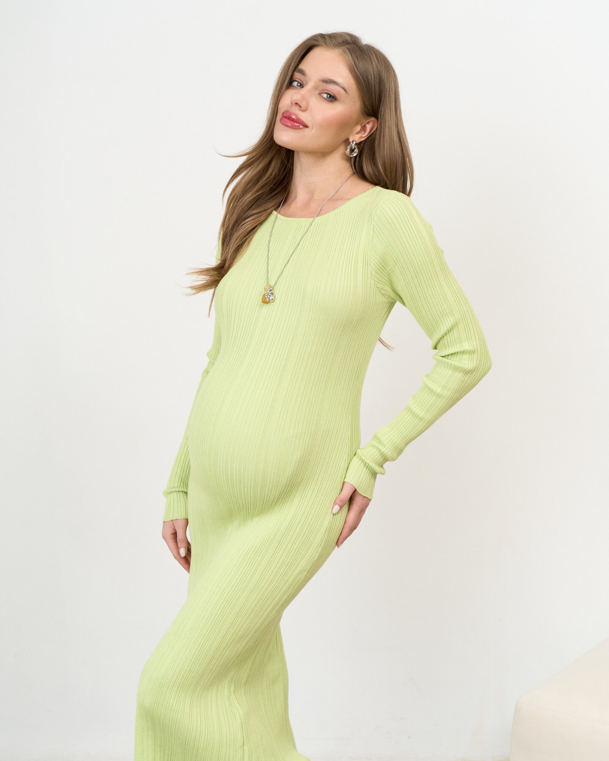 Трендовое платье-макси из трикотажа. В нем вы будете выглядеть эффектно и стильно, а высокая эластичность материала позволит носить это платье на протяжении всего периода беременности и после нее. Без секретов для кормления.