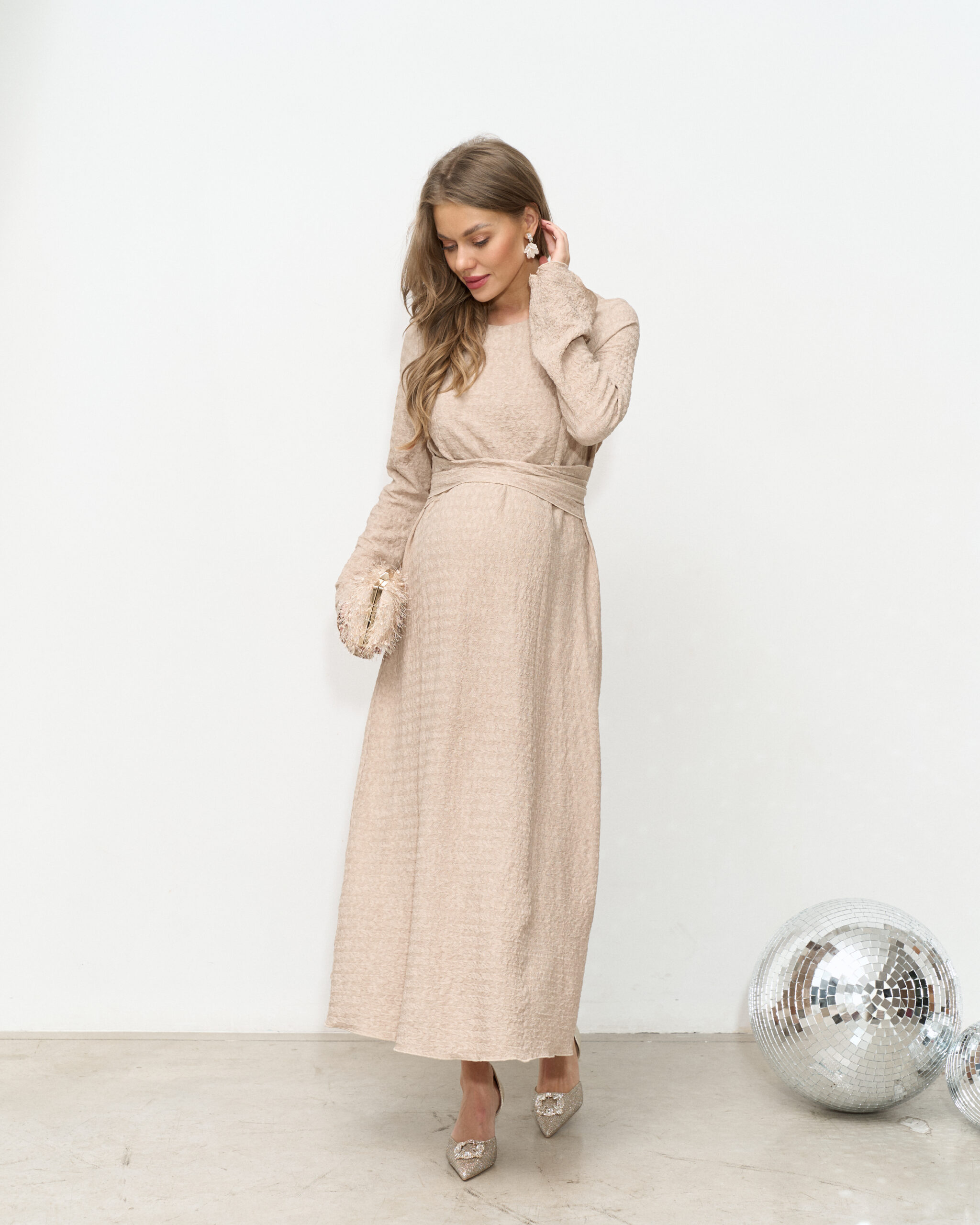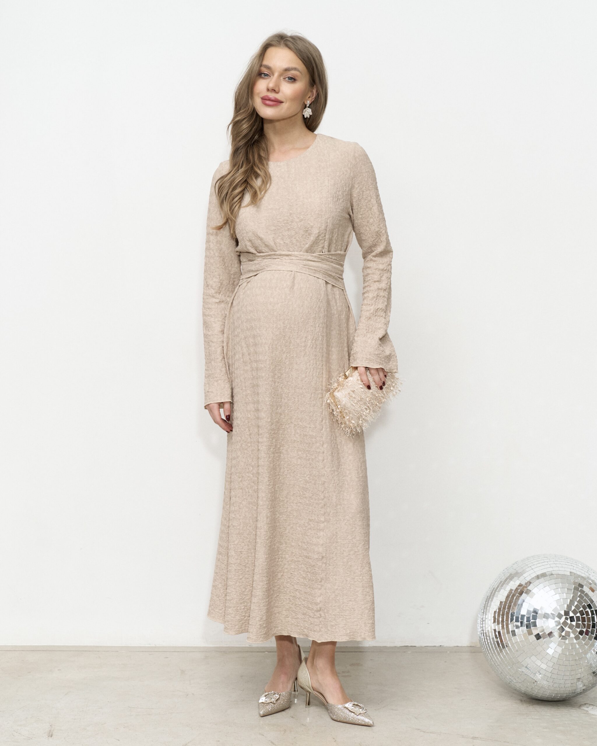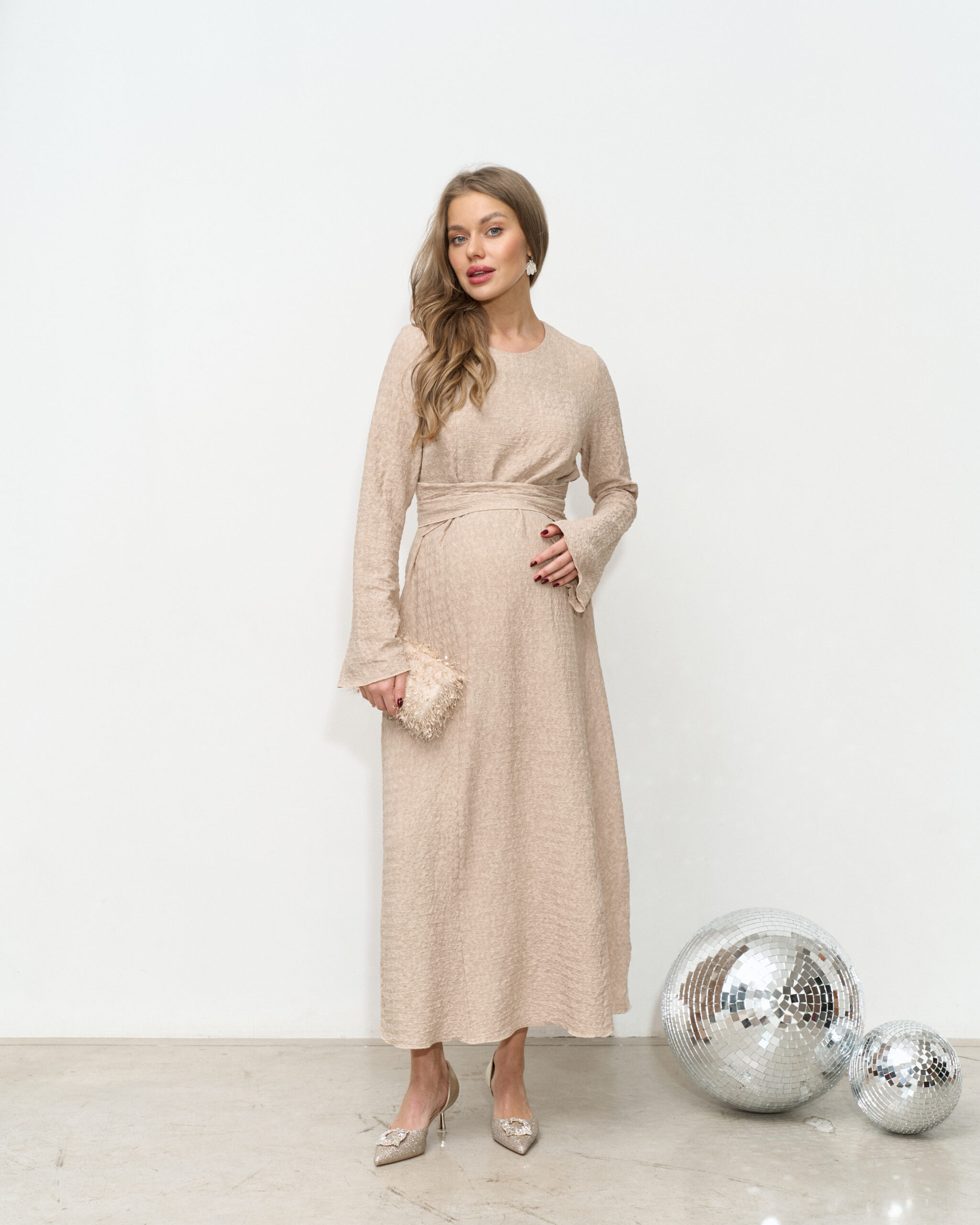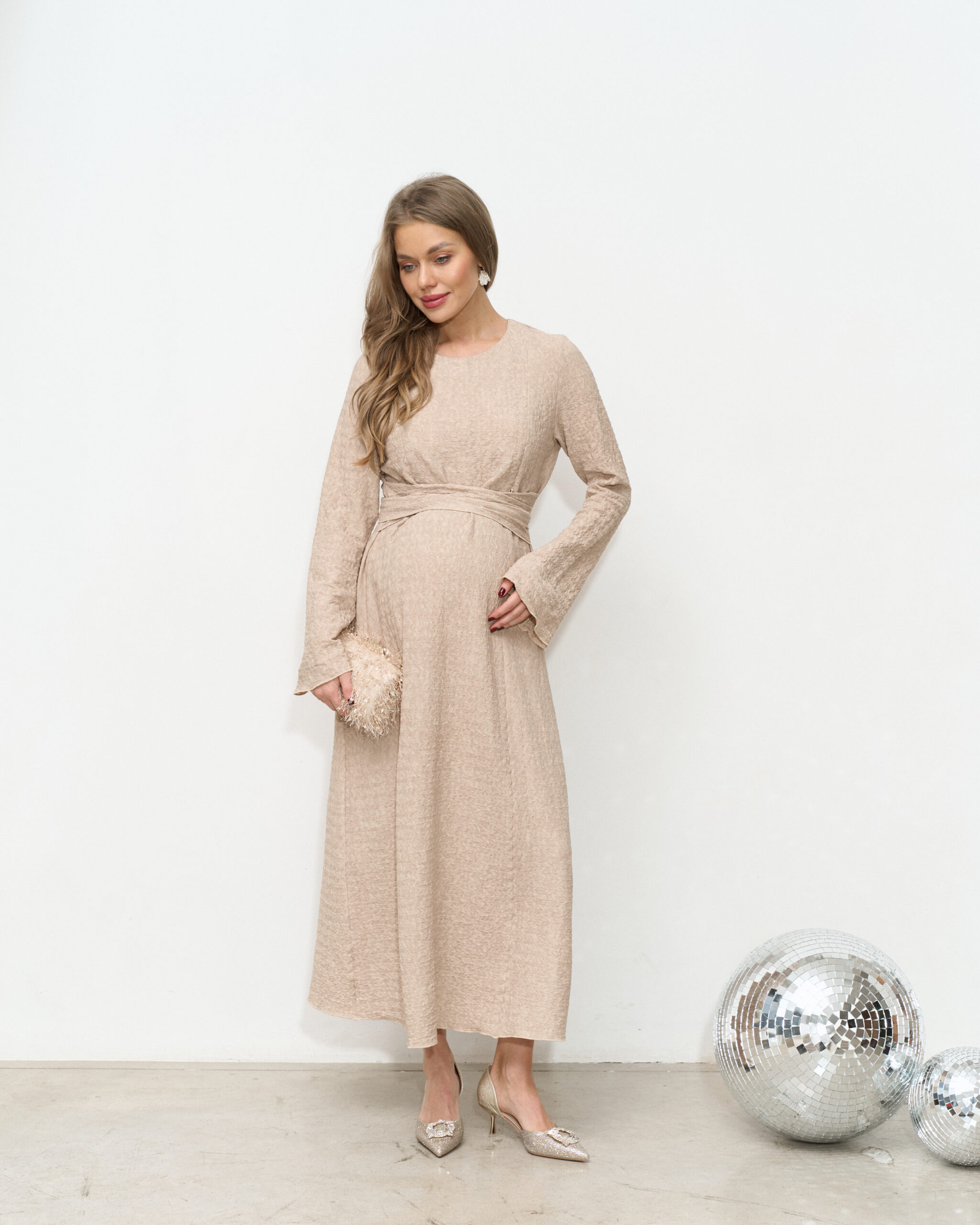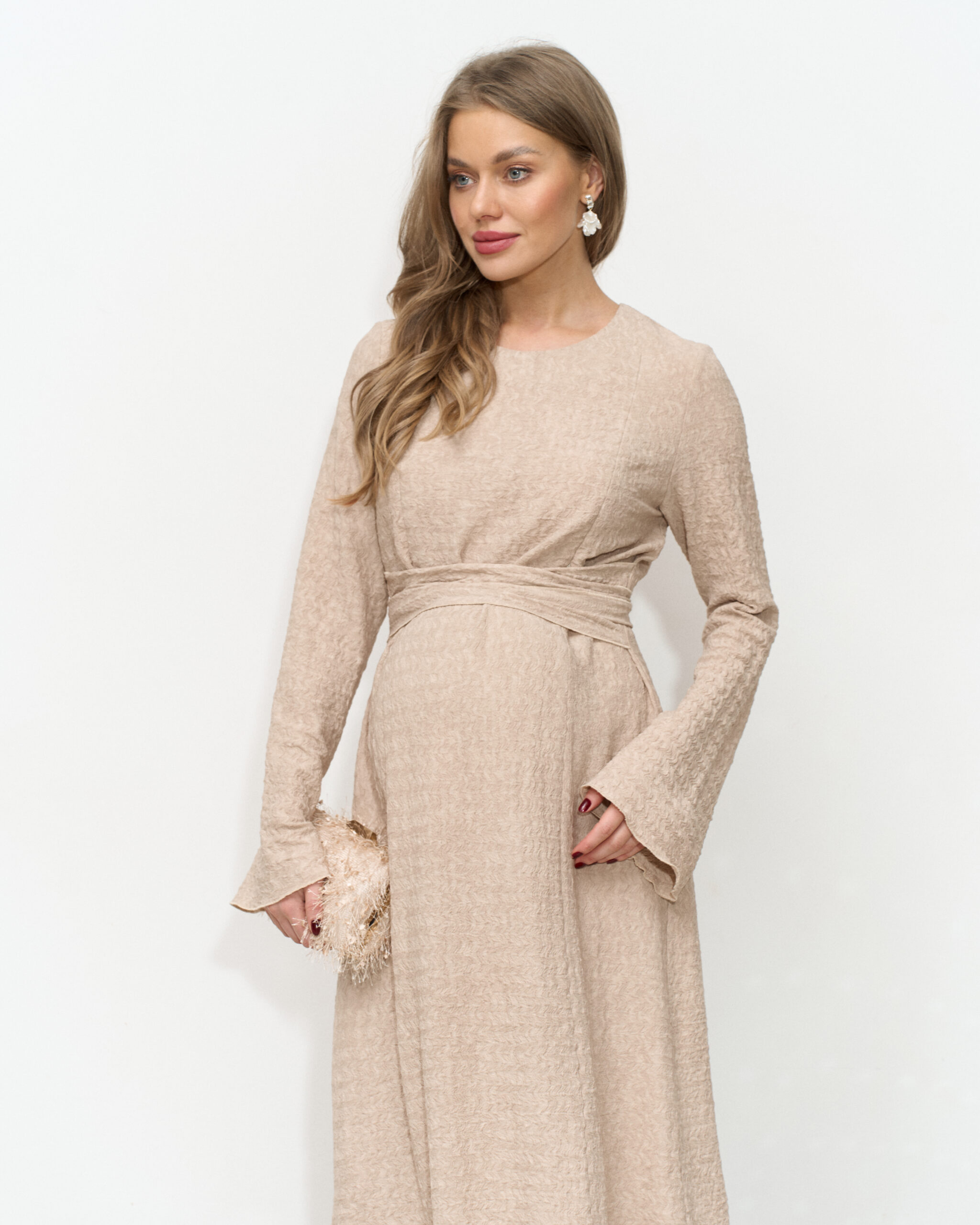 Бежевое платье для будущих и кормящих мам Malta Fest