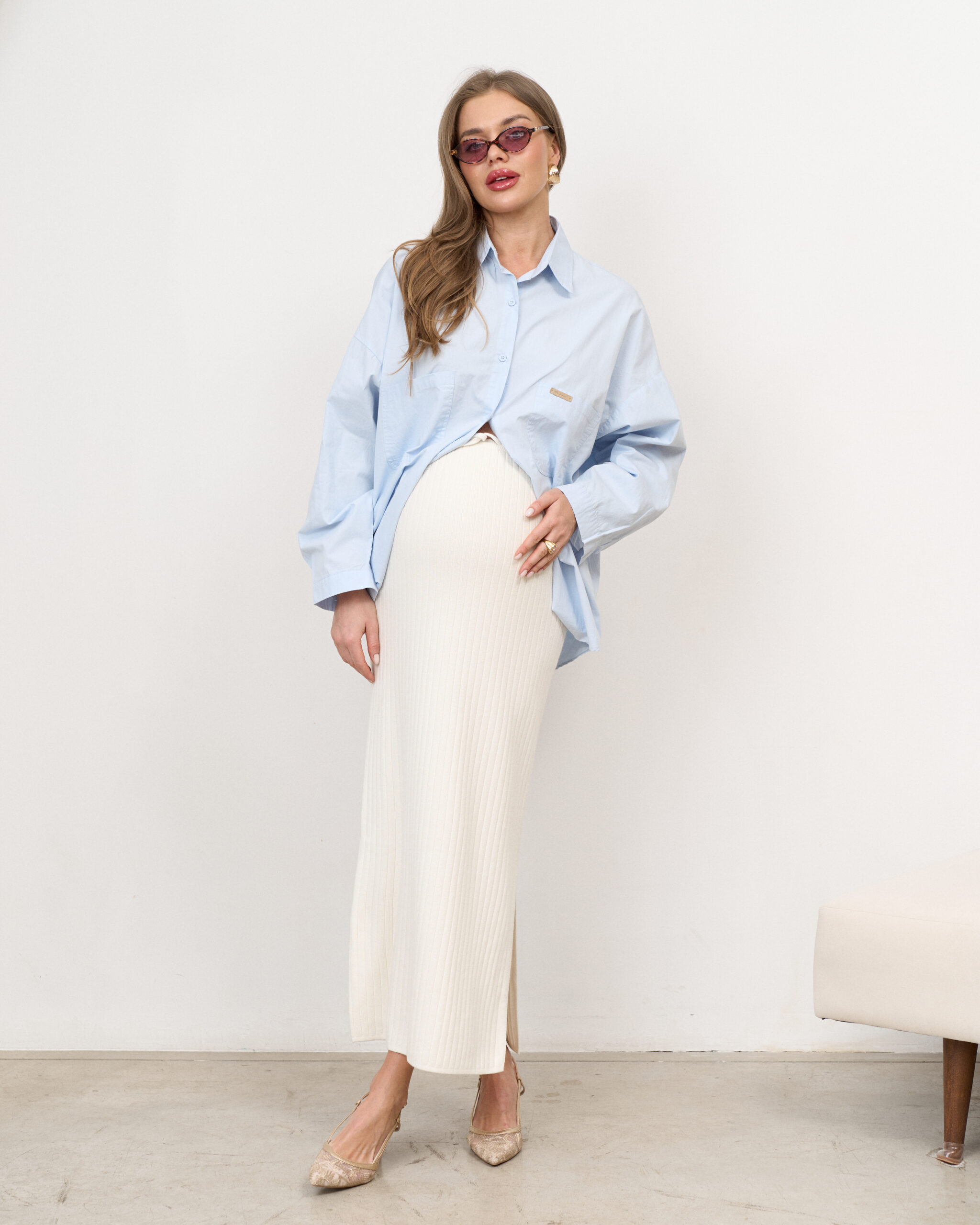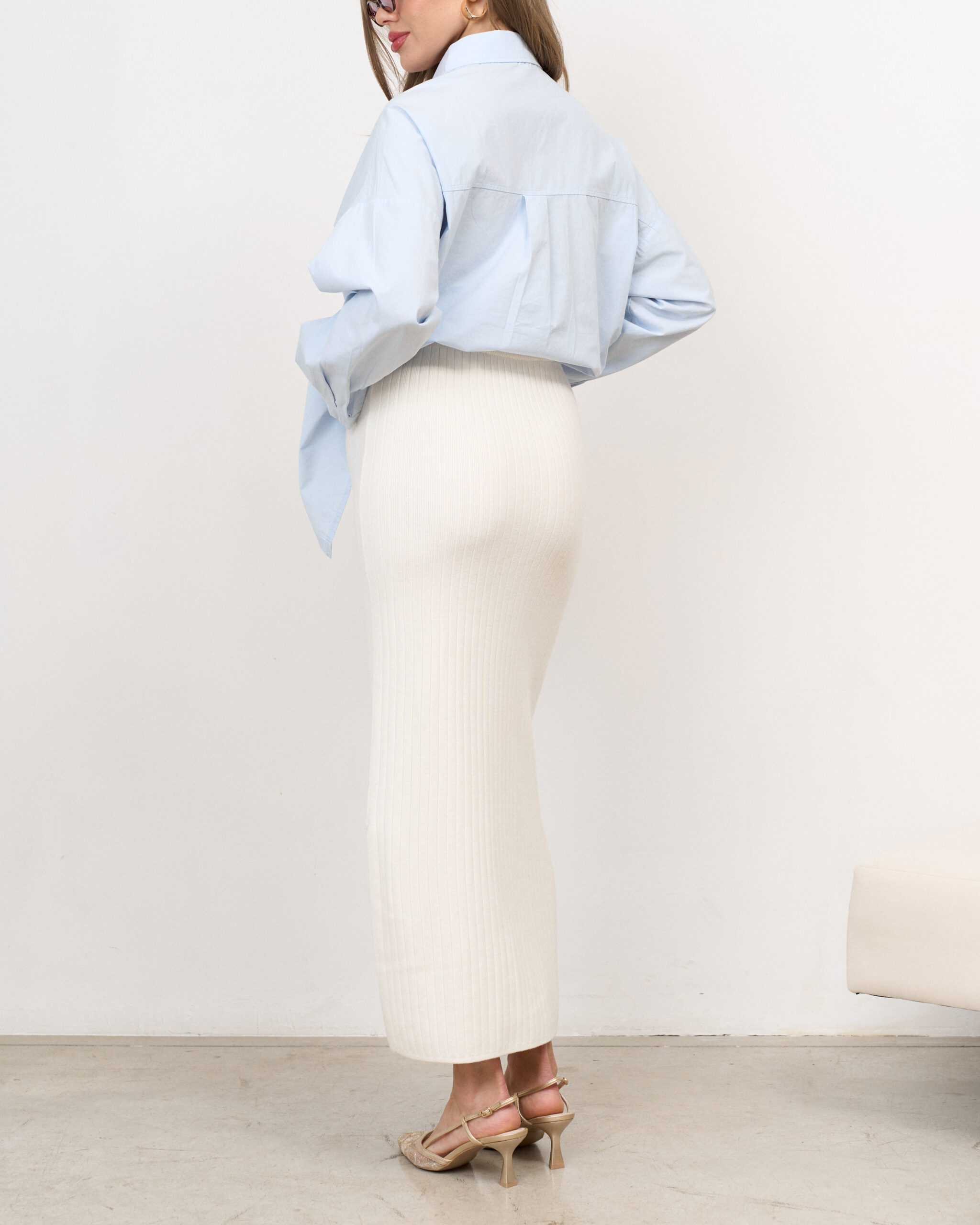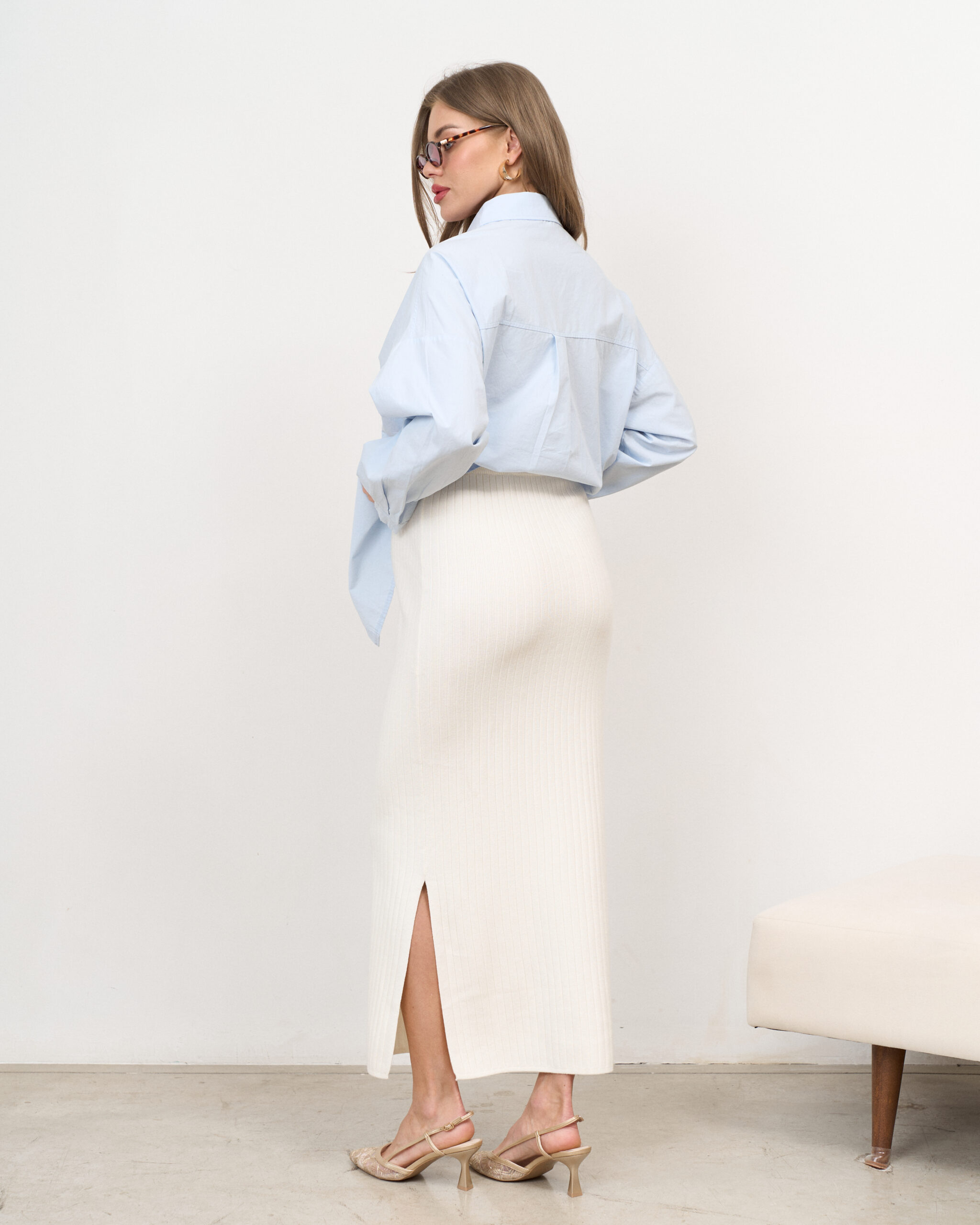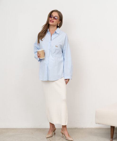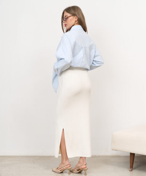 Молочная трикотажная юбка в рубчик Peony