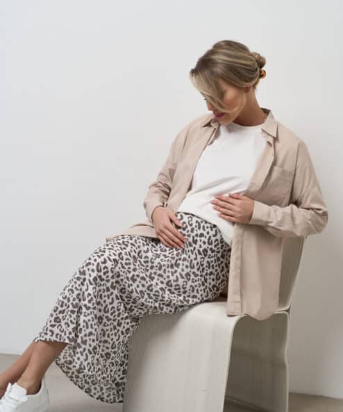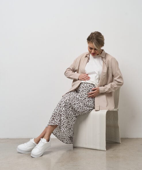 Стильная шифоновая юбка, которая подойдет на весь срок беременности и после. Пояс выполнен на мягкой резинке.
