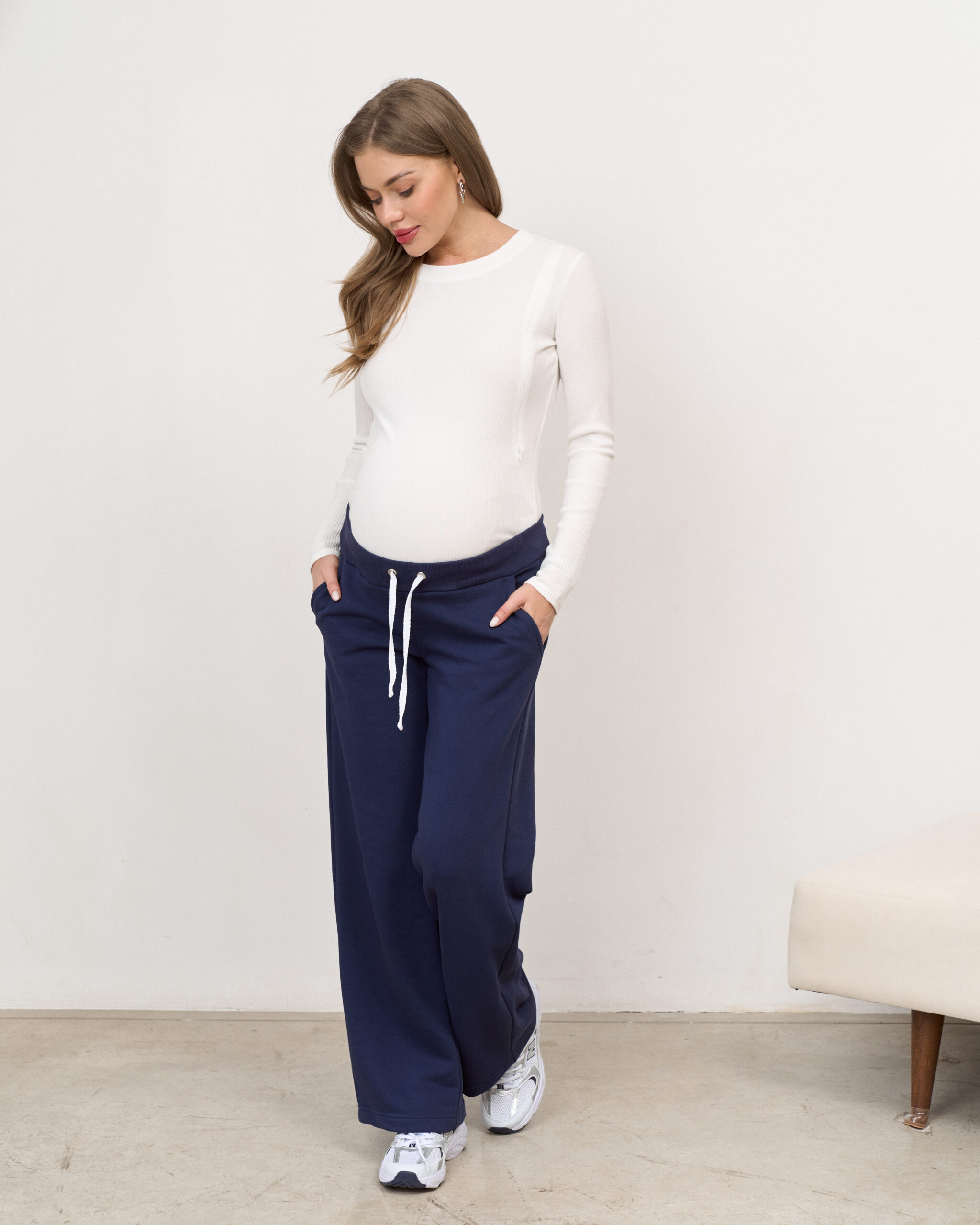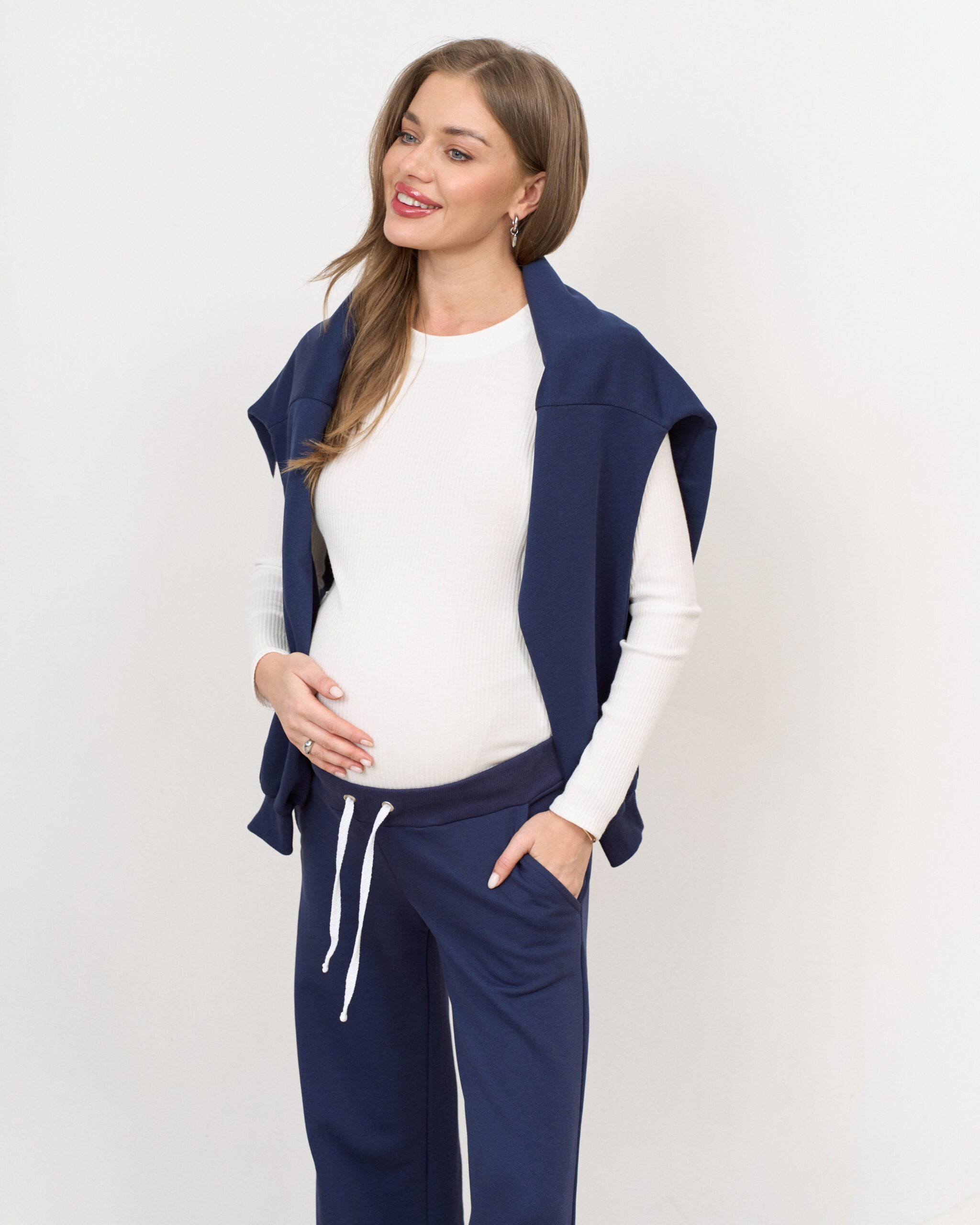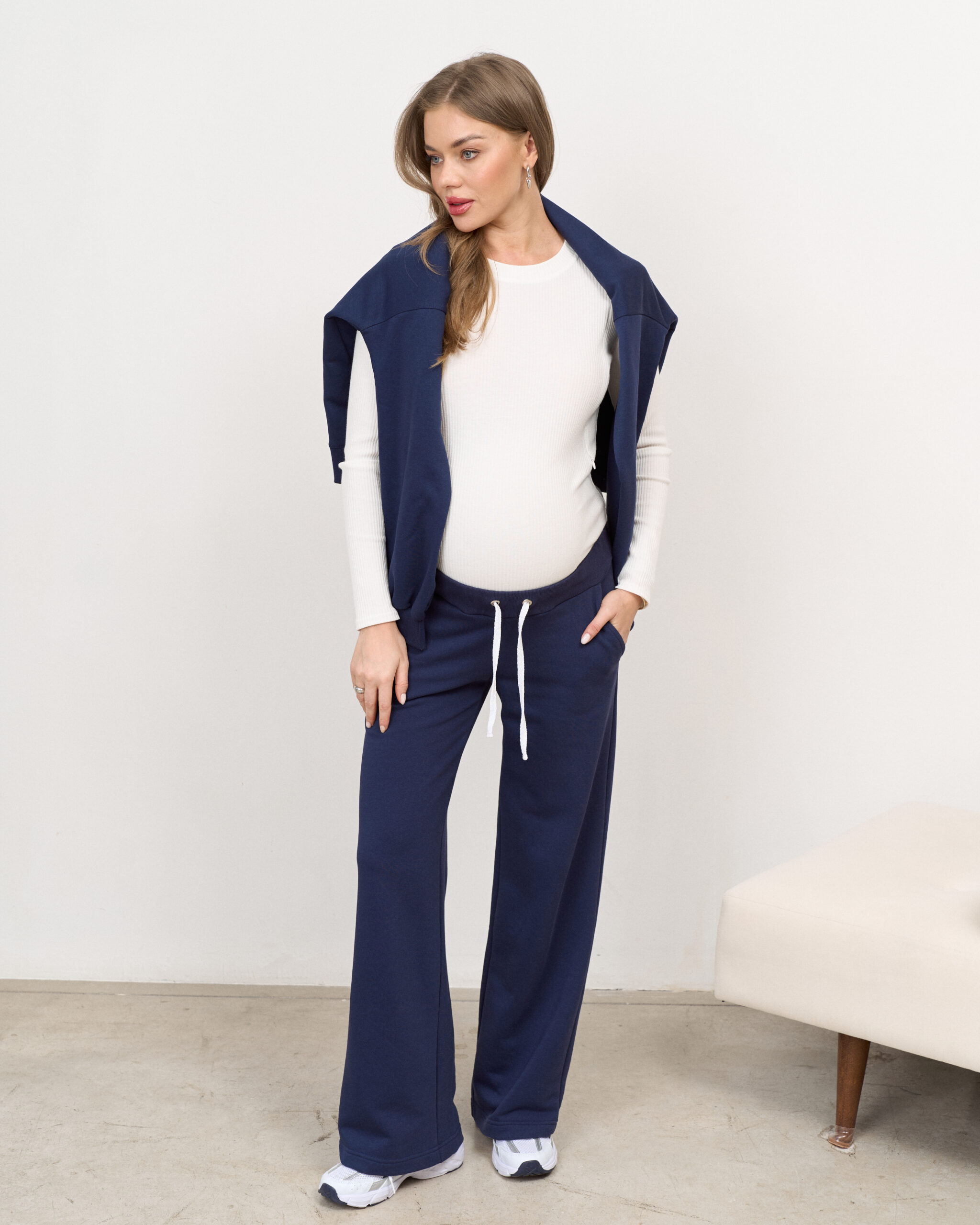 Комфортный и стильный боди из трикотажа в рубчик, прекрасно подходящий для фотосессий беременности. Также боди можно включать в повседневные образы, сочетая с юбками, джинсами и рубашками.