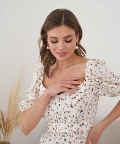 Отделка: эффектный разрез на юбке, смещенный в левую сторону.