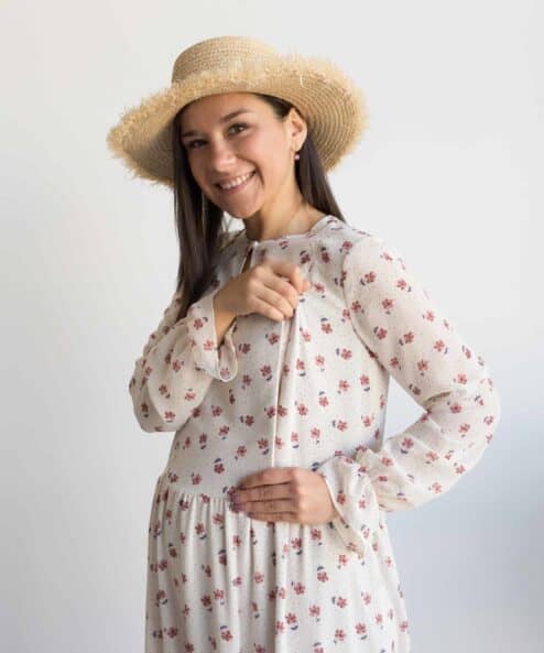 Молочное платье в цветочек для будущих и кормящих мам Valencia