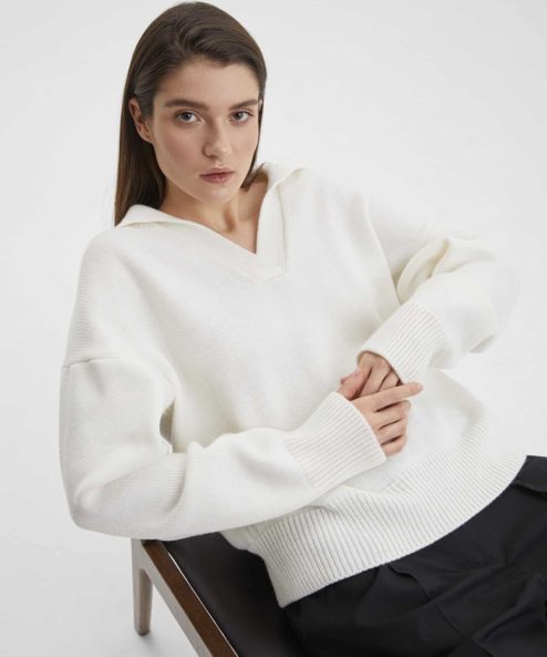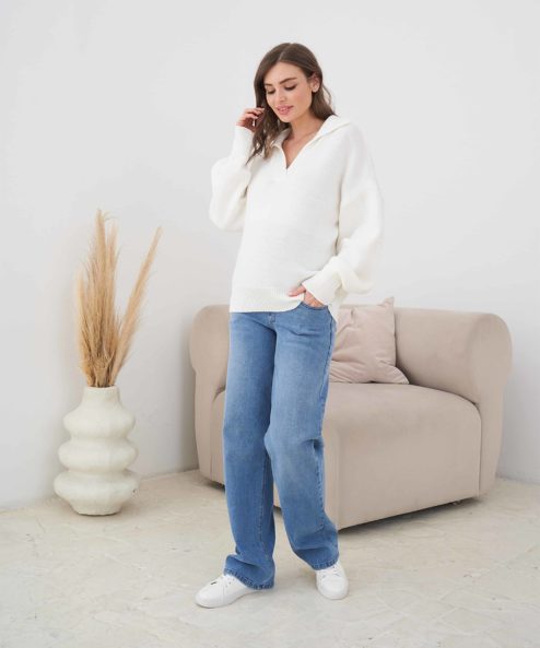 Этот стильный джемпер-поло подойдет на весь период беременности и после. Состав пряжи премиального качества согреет вас зимой и подарит комфорт в межсезонье. А актуальный крой и фасон позволит создавать множество стильных городских образов.