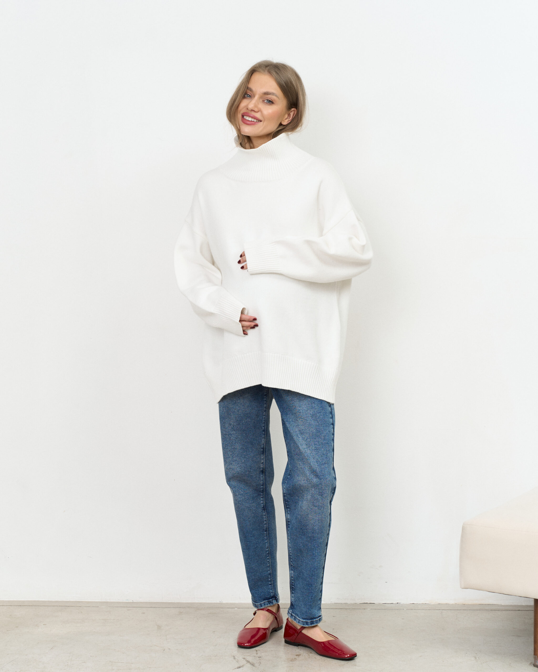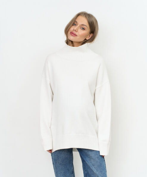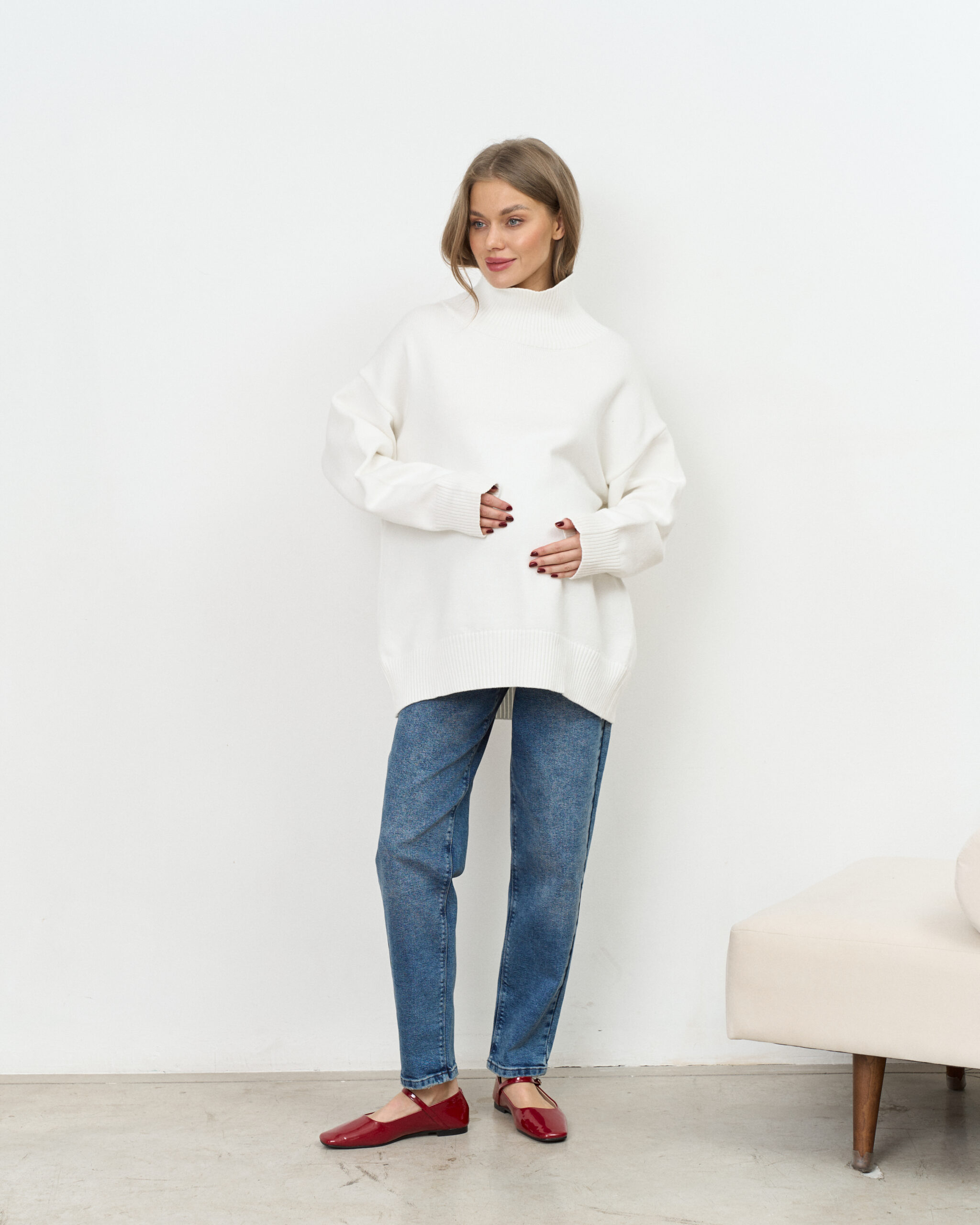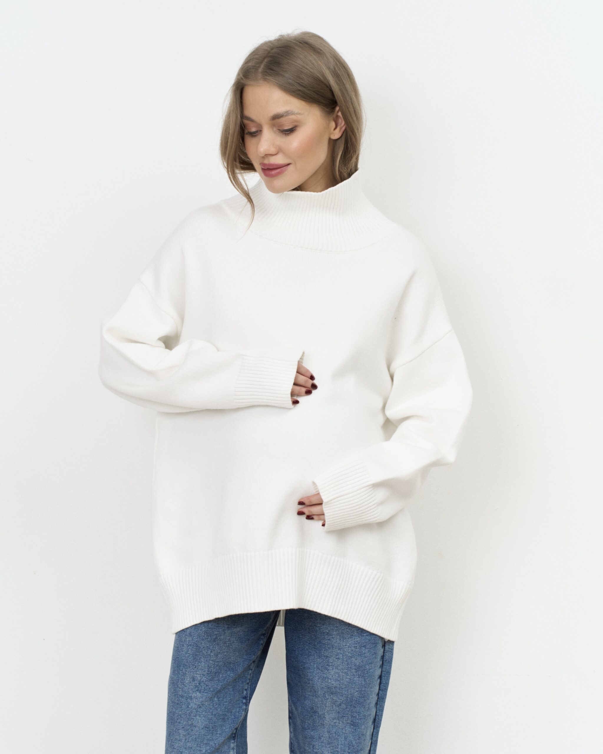 Этот мягкий и теплый свитер-оверсайз подойдет на весь период беременности и после. Он согреет вас в холодное время года и позволит создать модные образы. Без молний для кормления