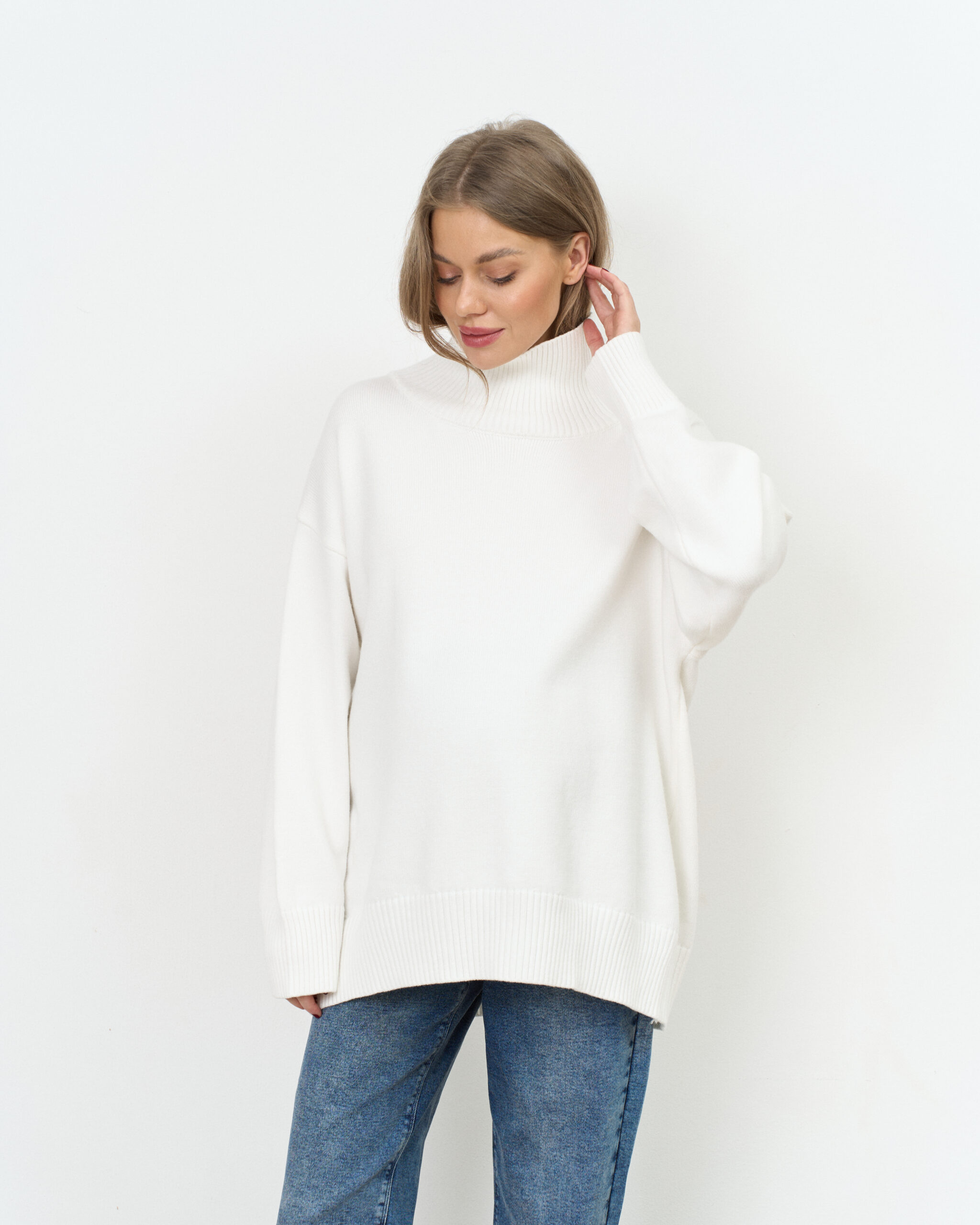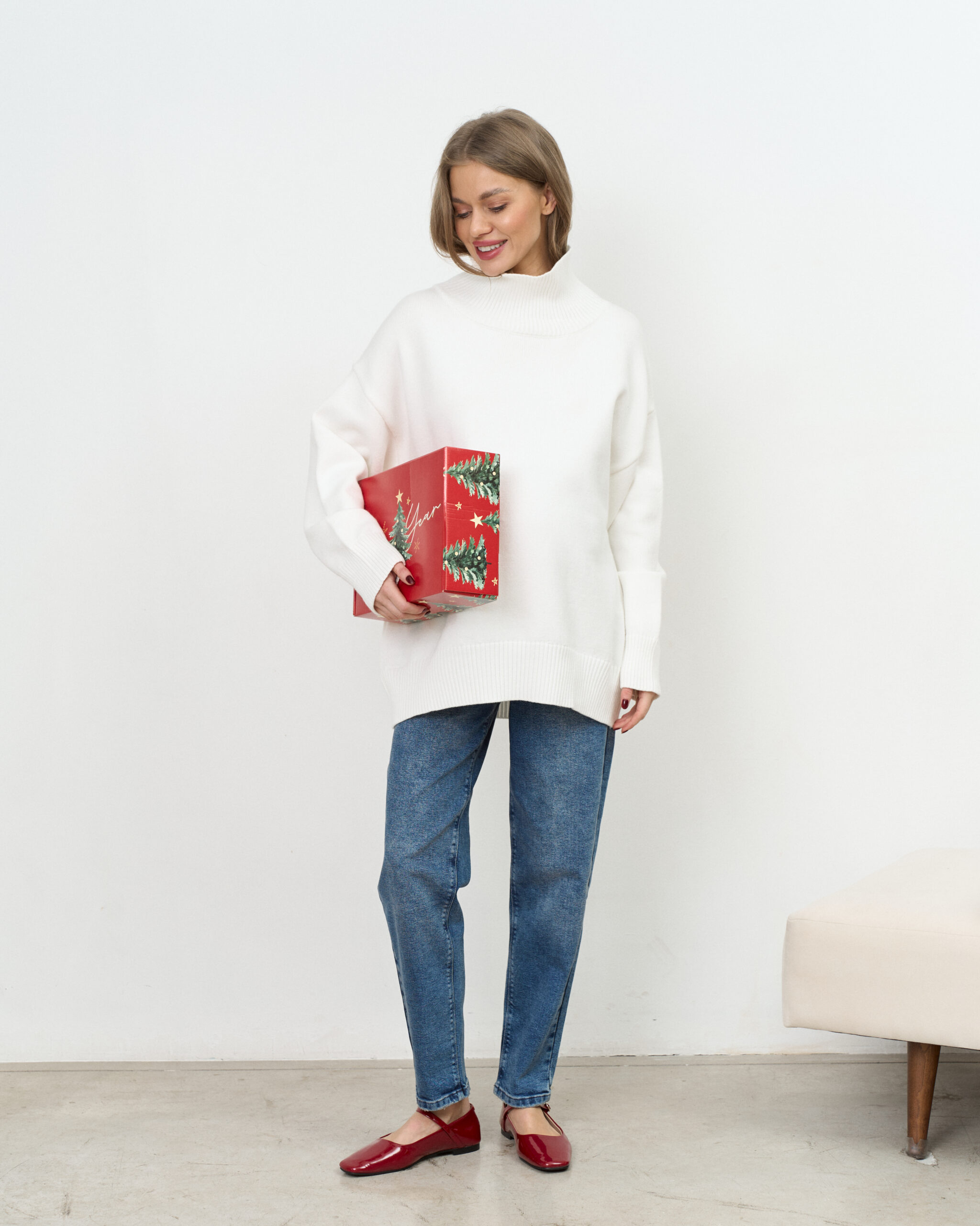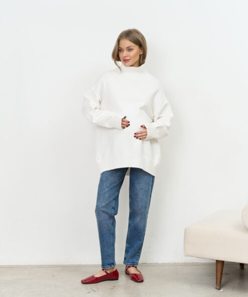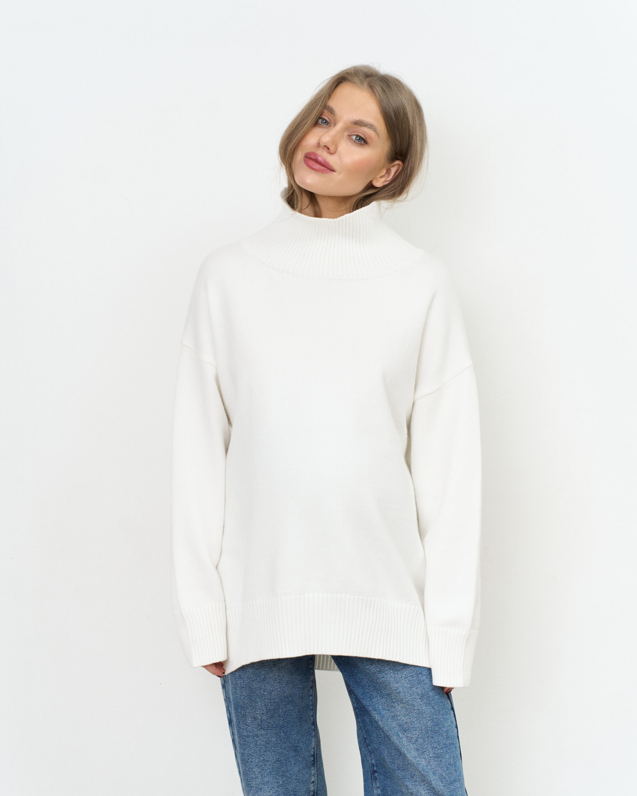 Этот мягкий и теплый свитер-оверсайз подойдет на весь период беременности и после. Он согреет вас в холодное время года и позволит создать модные образы. Без молний для кормления