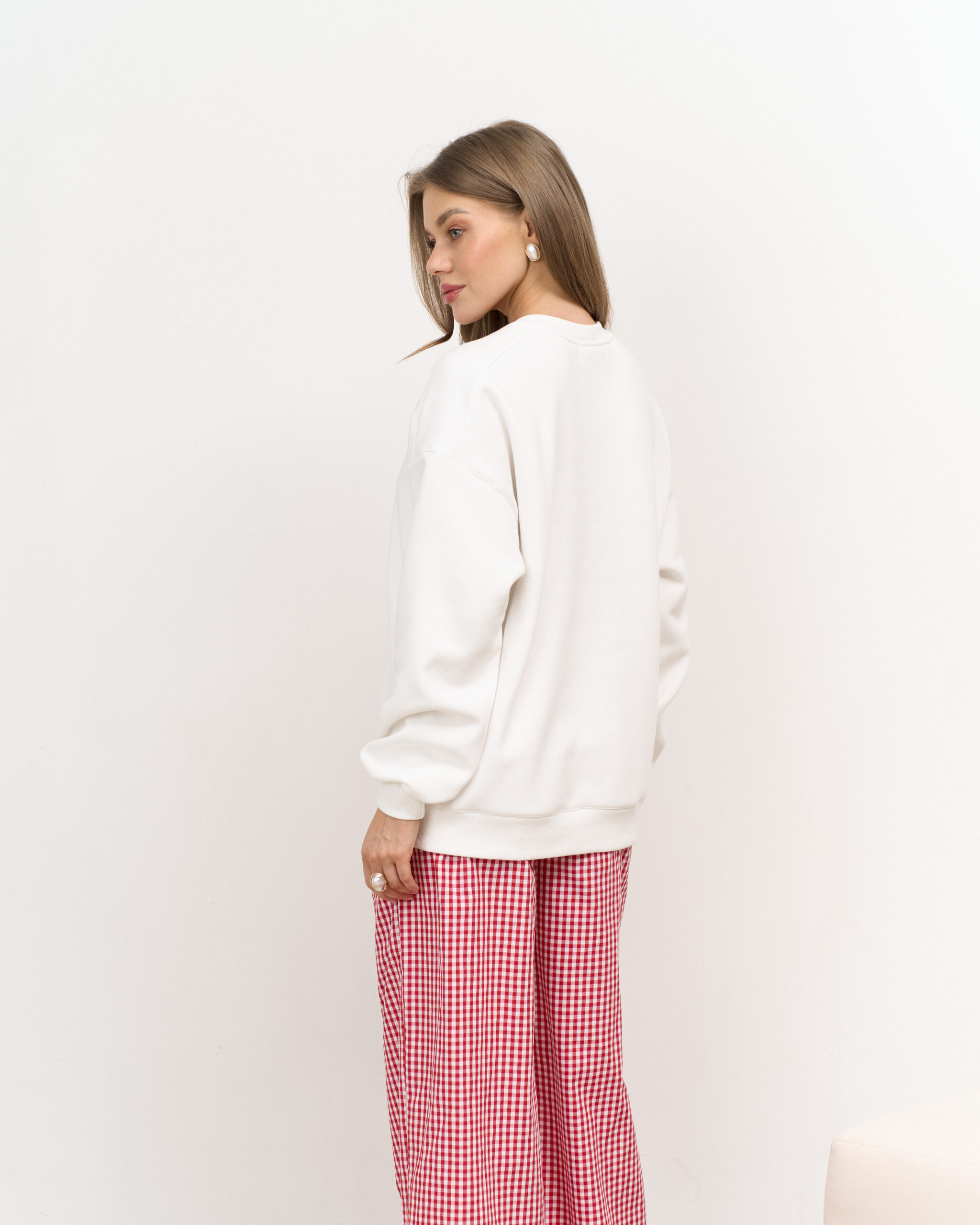 Свитшот выполнен из премиального тёплого футера с начесом-барашком, который не скатывается и согреет вас в холодное время года.