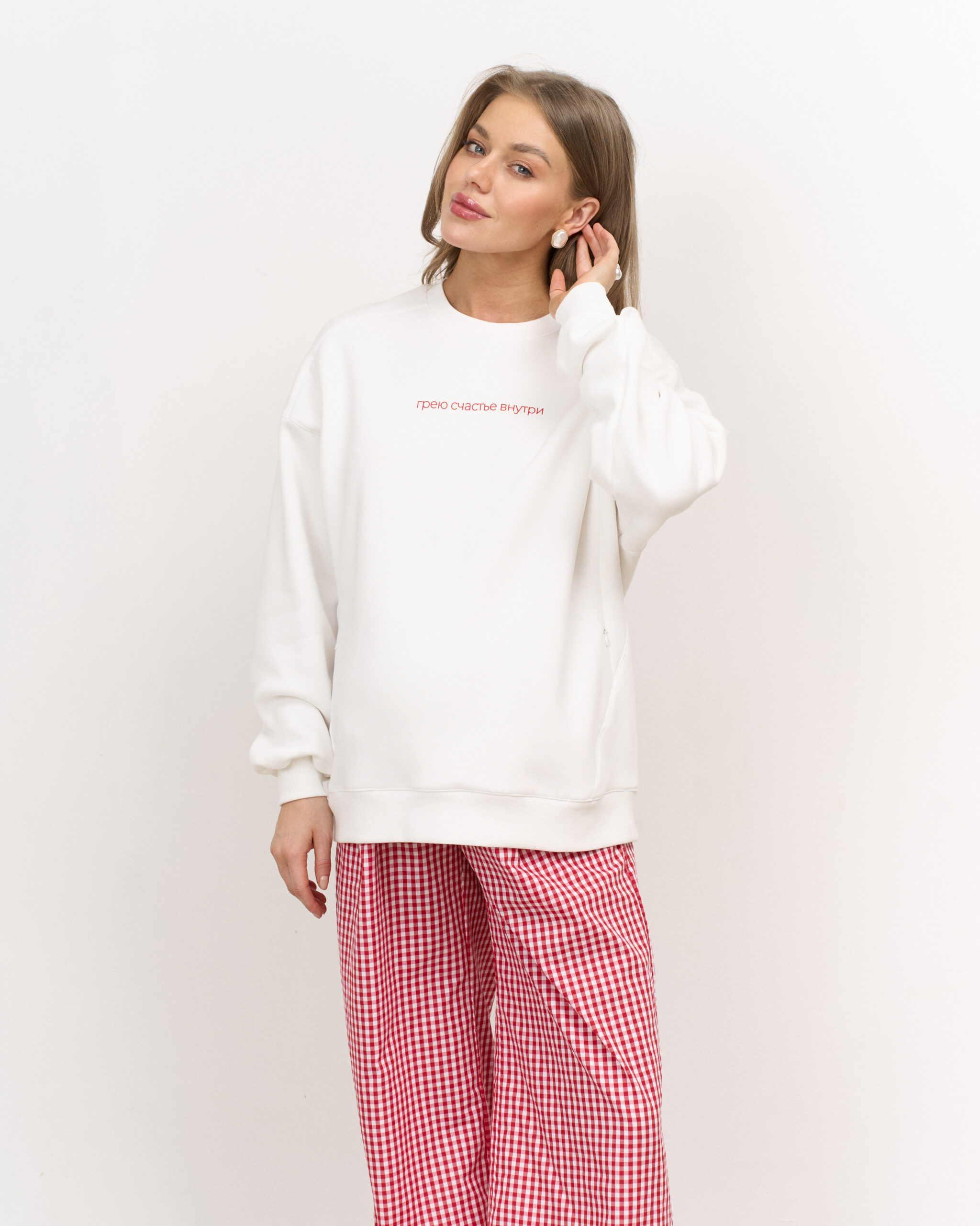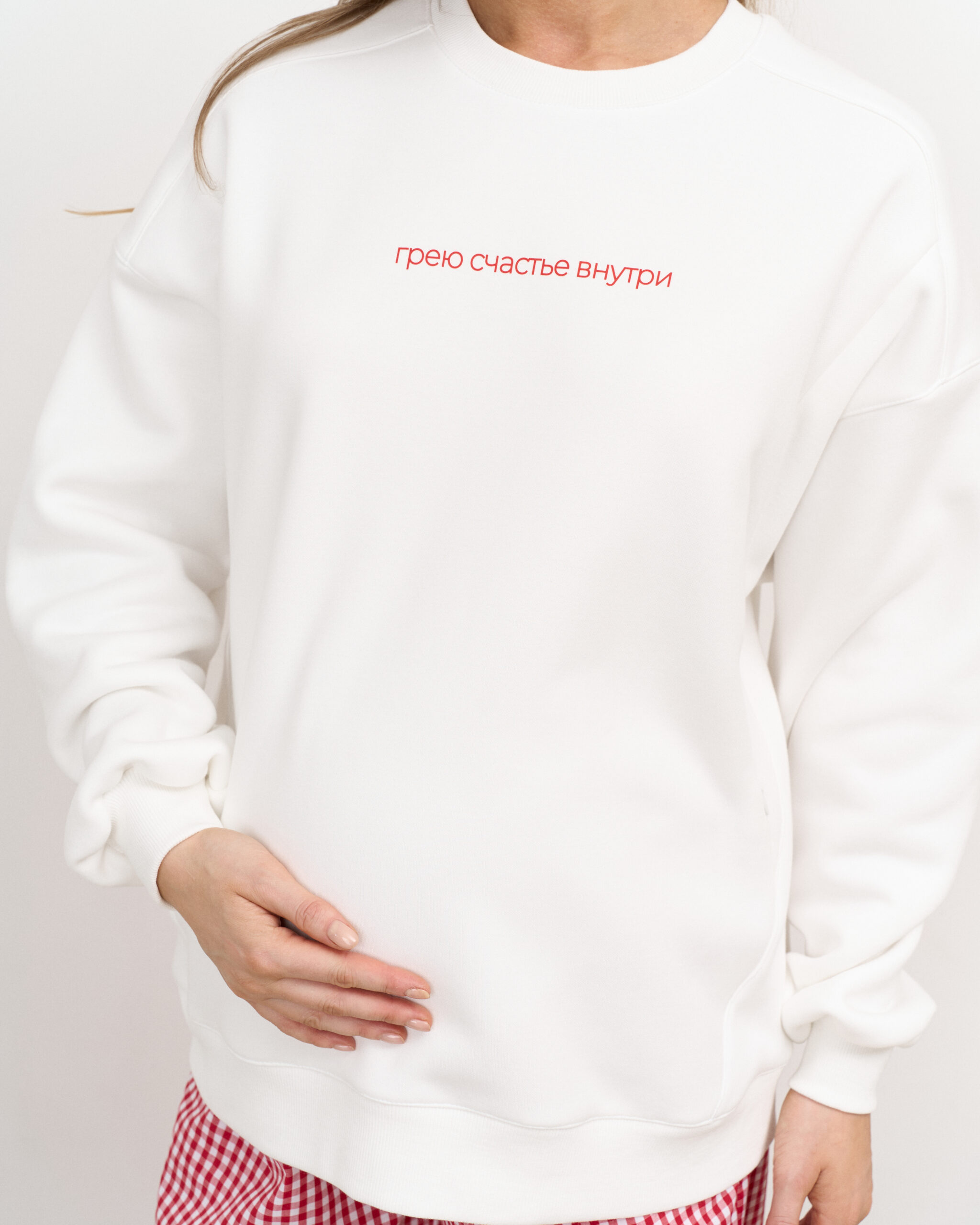 Молочный теплый свитшот для мам Грею счастье внутри