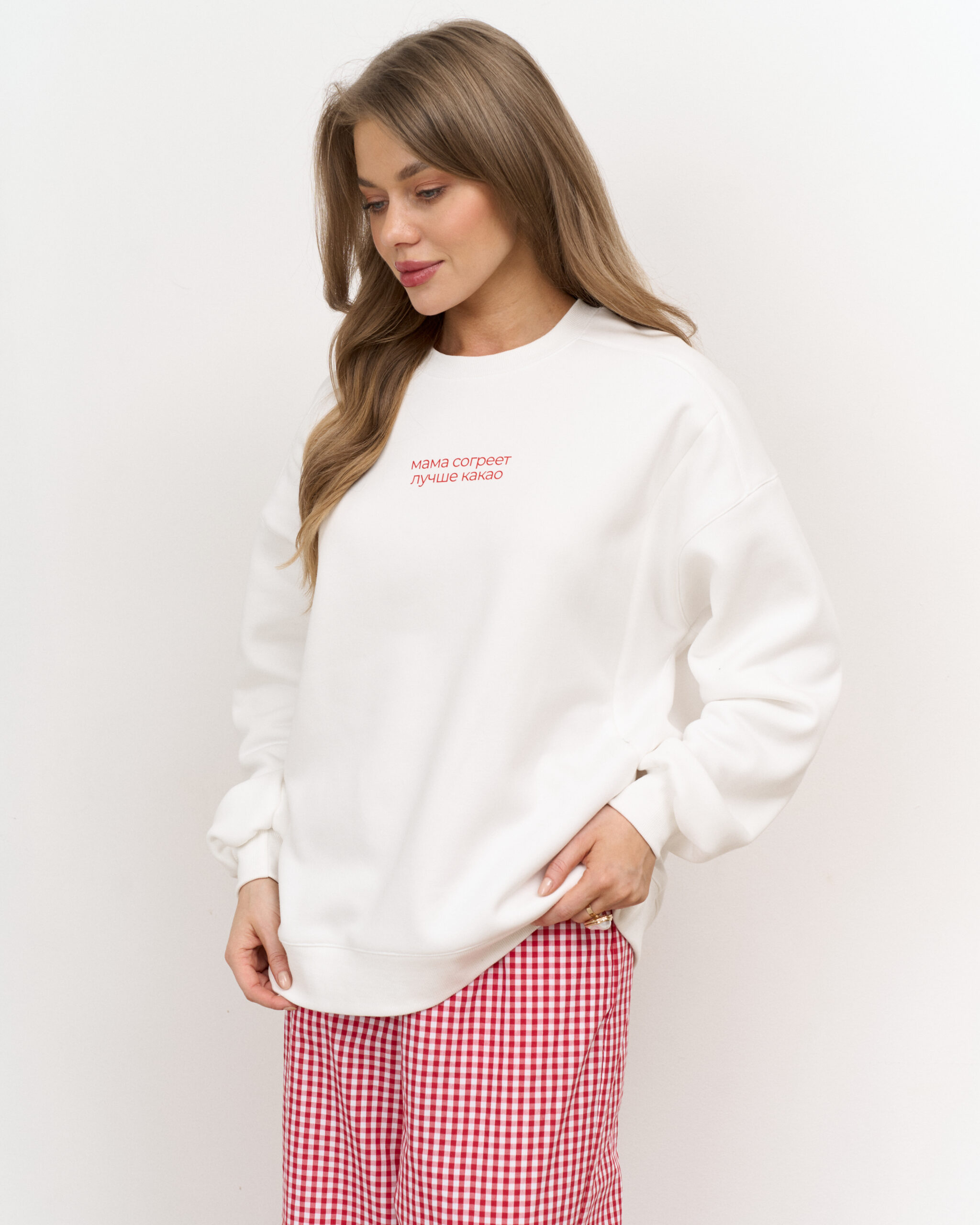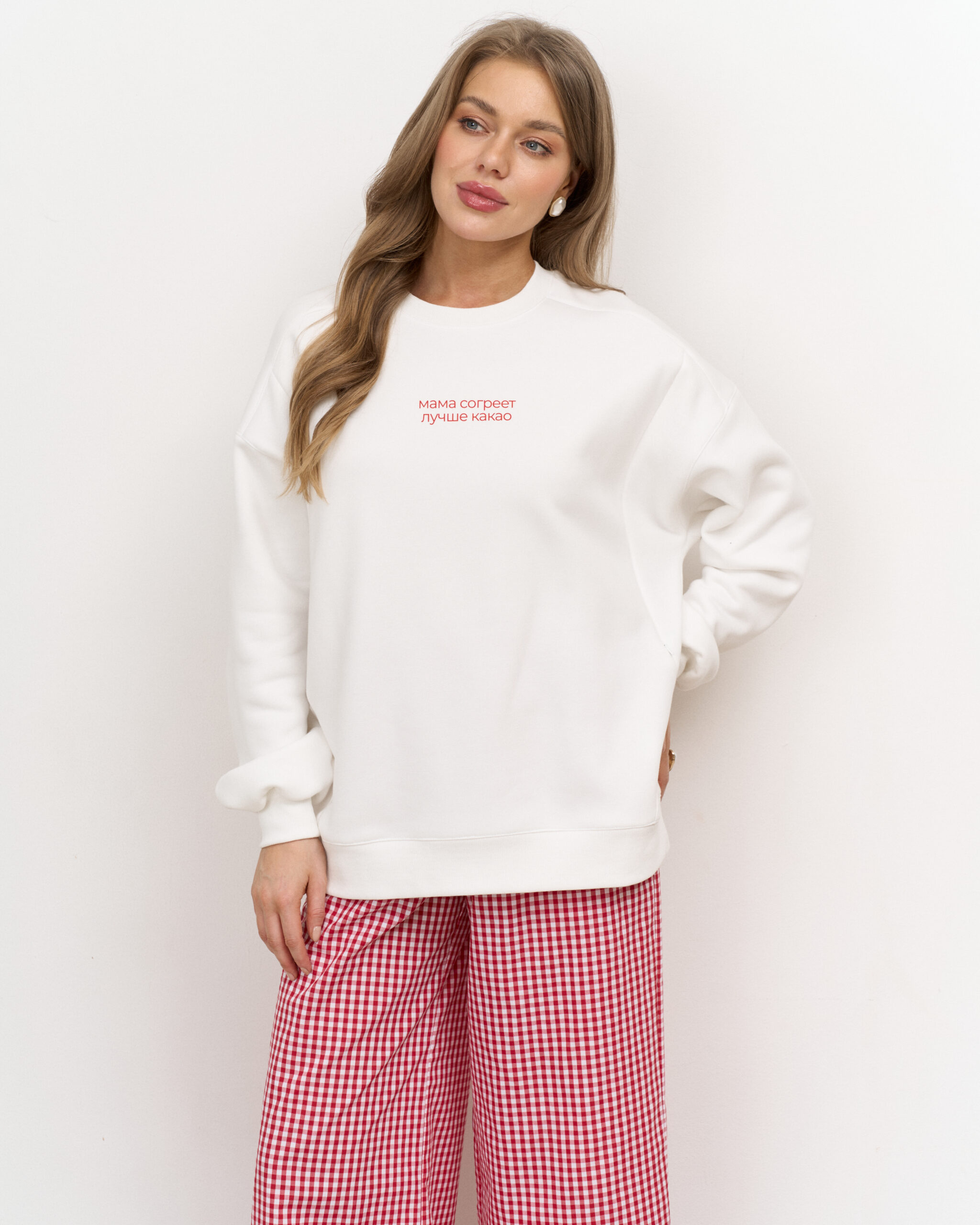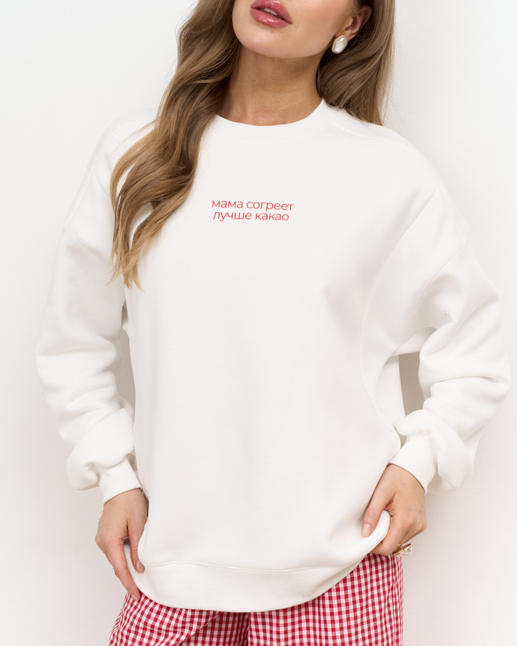 Свитшот выполнен из премиального тёплого футера с начесом-барашком, который не скатывается и согреет вас в холодное время года.