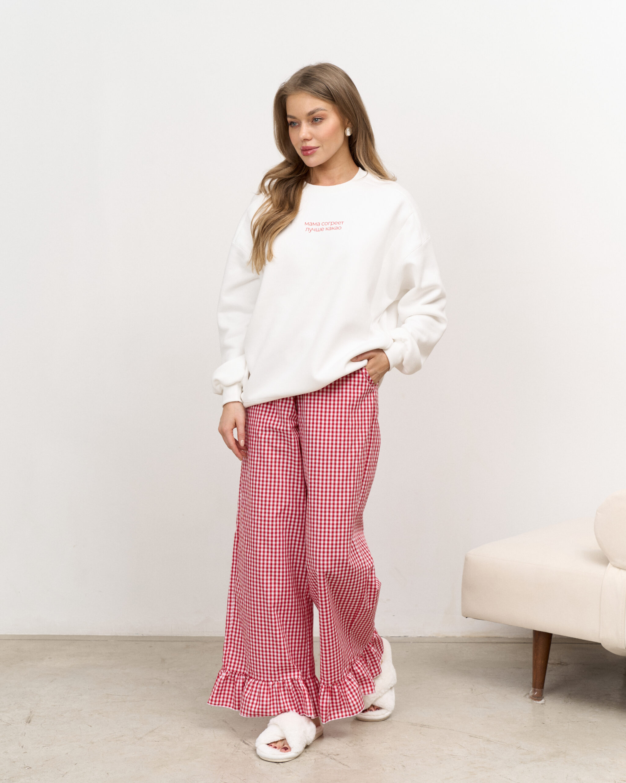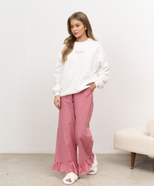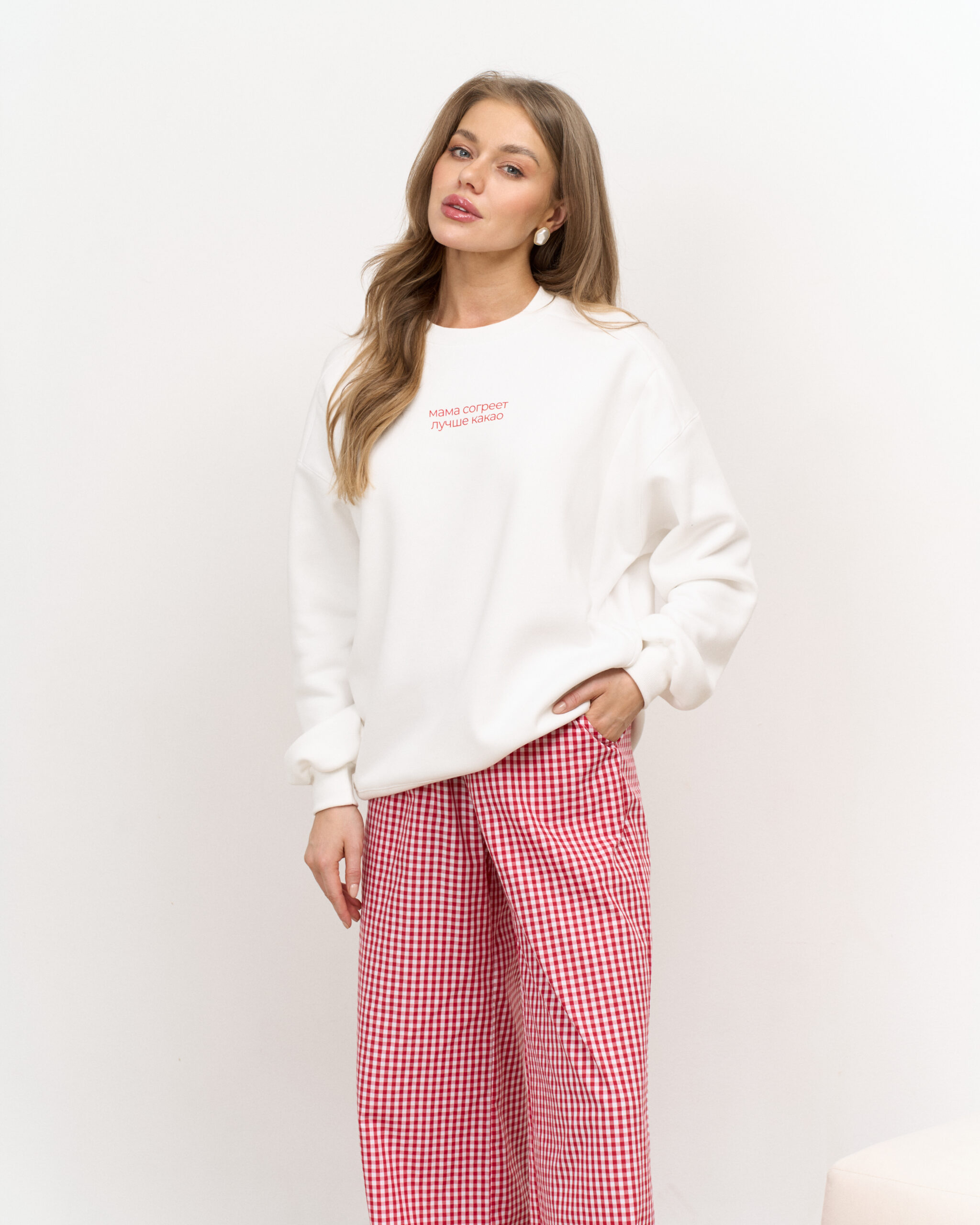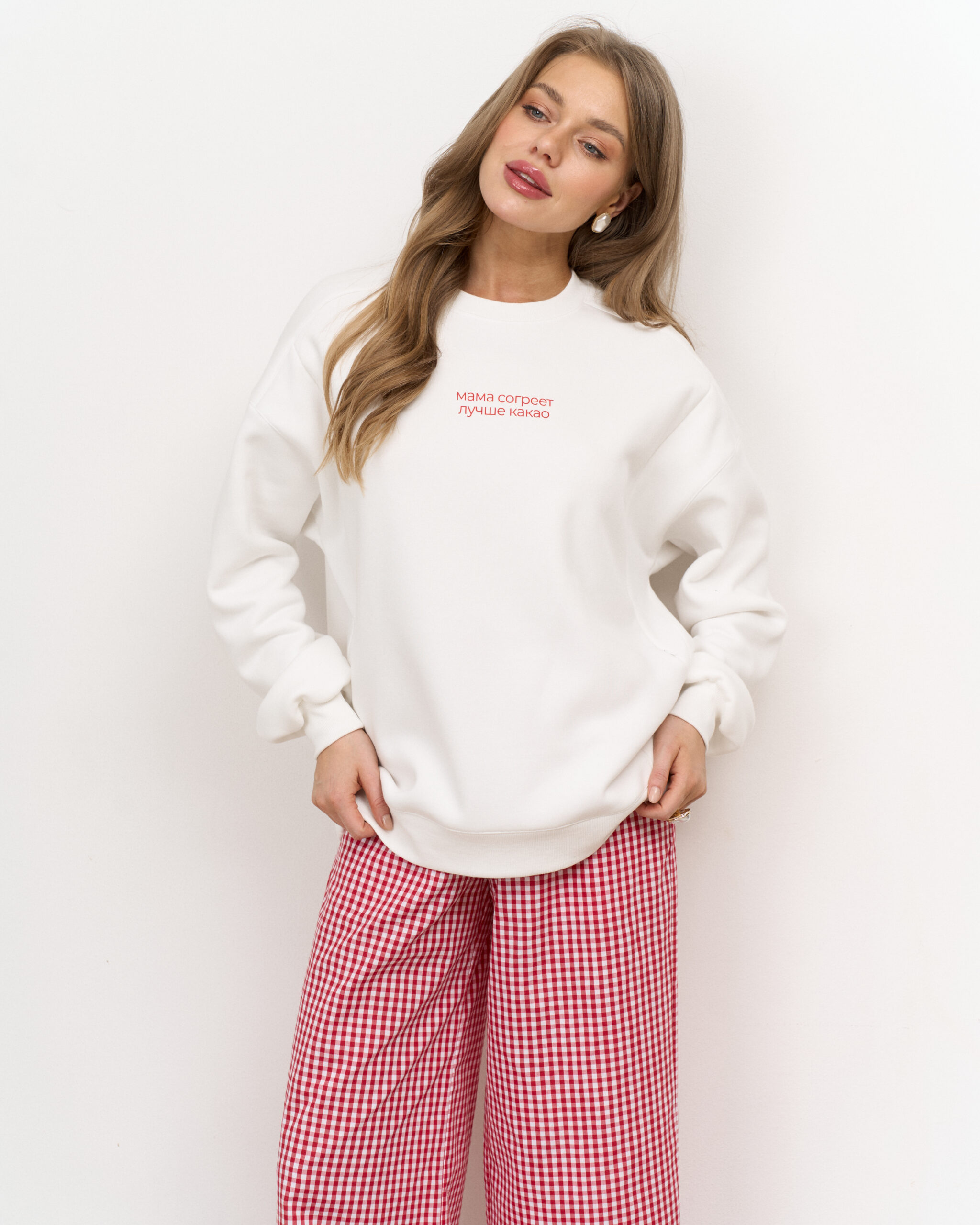 Свитшот выполнен из премиального тёплого футера с начесом-барашком, который не скатывается и согреет вас в холодное время года.