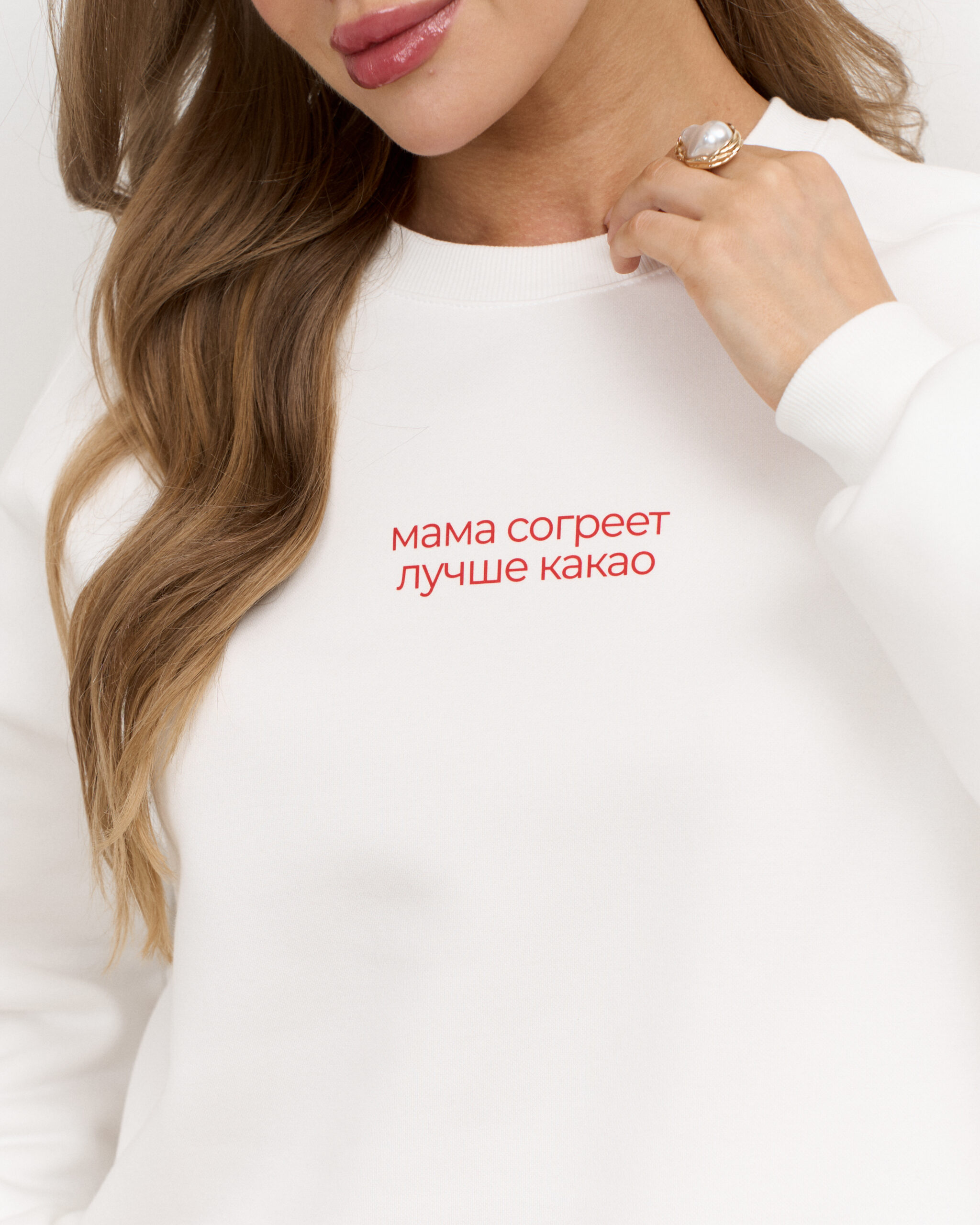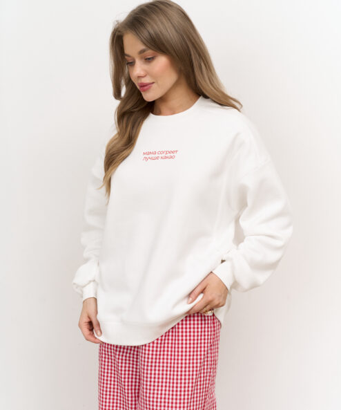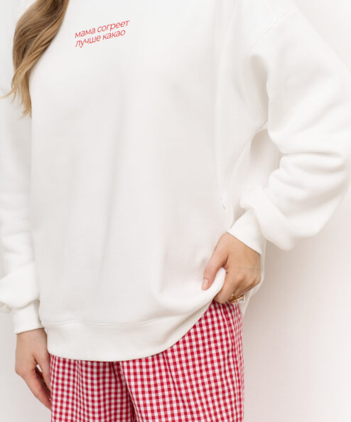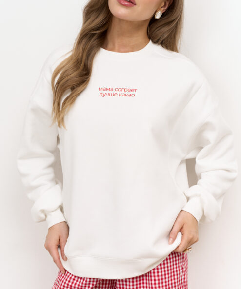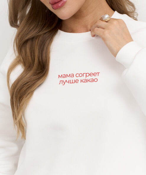 Молочный теплый свитшот для мам Мама согреет лучше какао