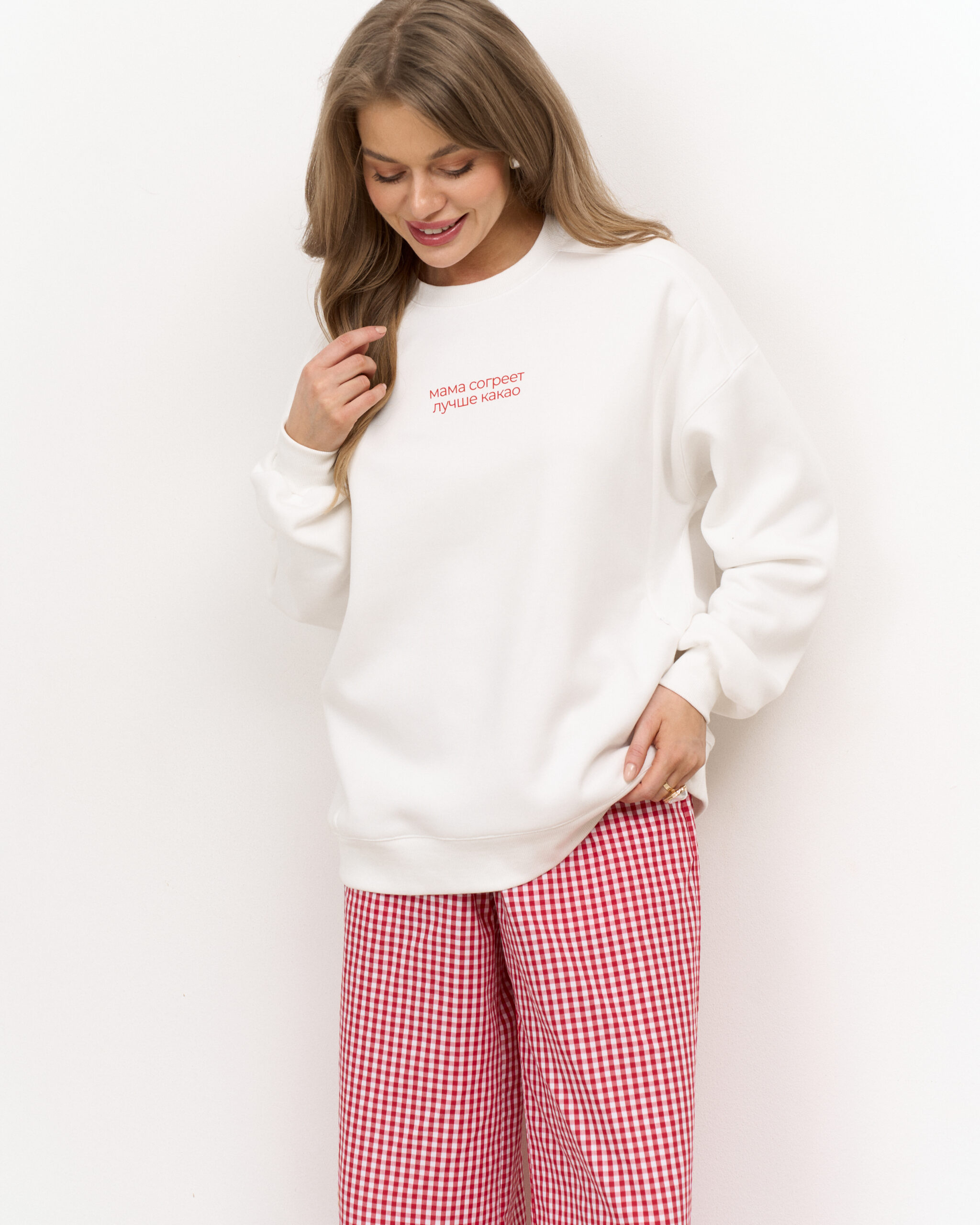 — принт  на груди — МАМА СОГРЕЕТ ЛУЧШЕ КАКАО