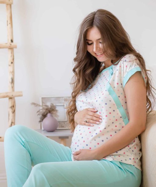 Мятная пижама для будущих и кормящих мам Relax в горошек
