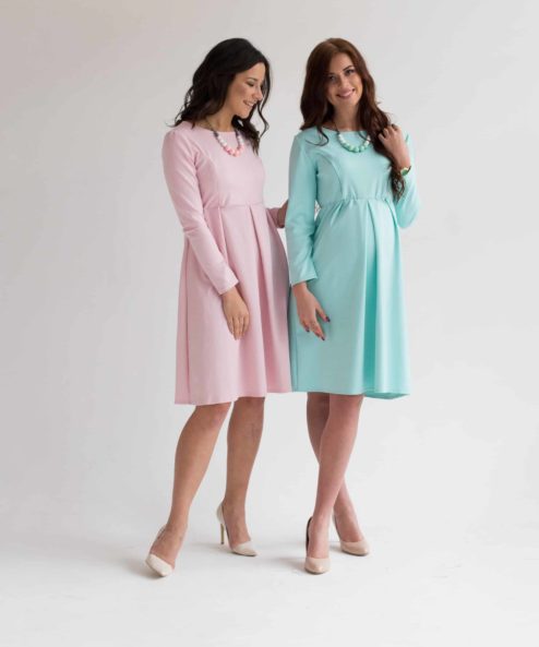 Топ оснащен секретами для кормления в виде потайных молний, поэтому платье можно носить и после беременности.