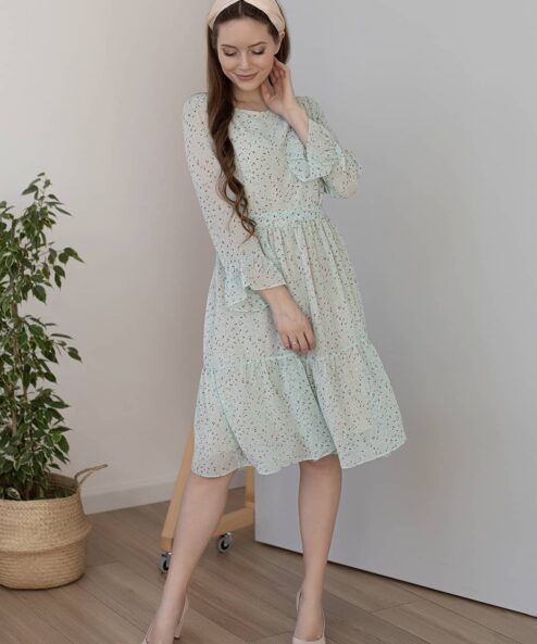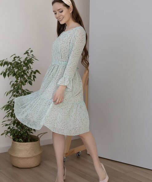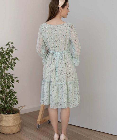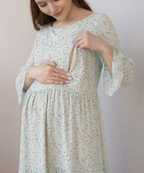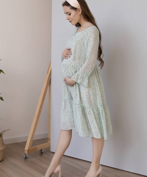 Женственное, ярусное платье из струящегося шифона на подкладе из итальянской вискозы. В таком платье вы будете чувствовать себя утонченно и изысканно на любом сроке беременности и после. В комплекте пояс, платье можно носить с поясом и без. Для периода грудного вскармливания предназначены незаметные вертикальные молнии.