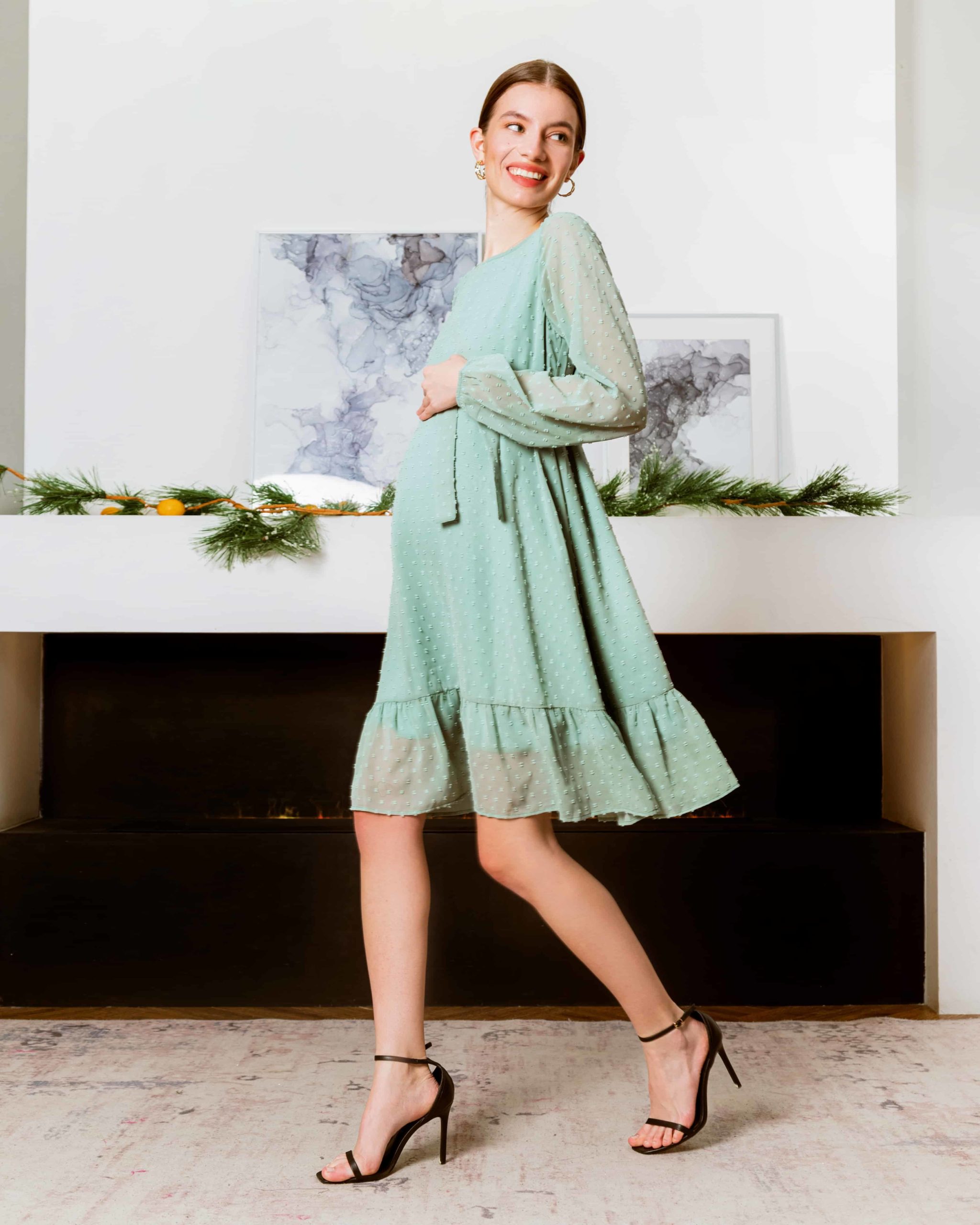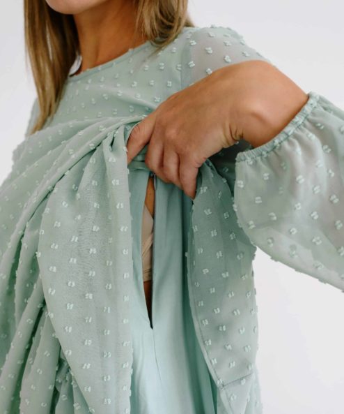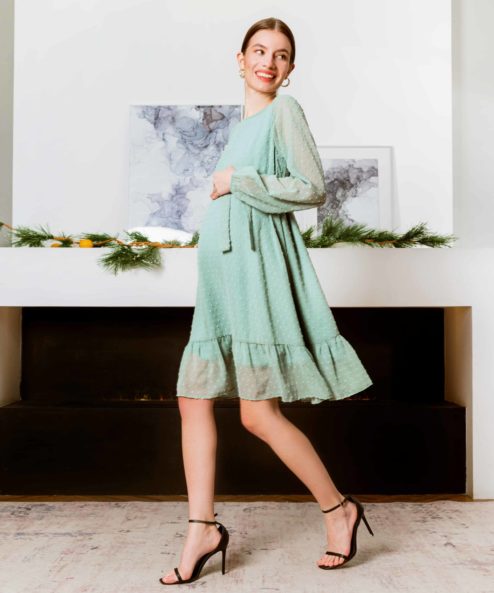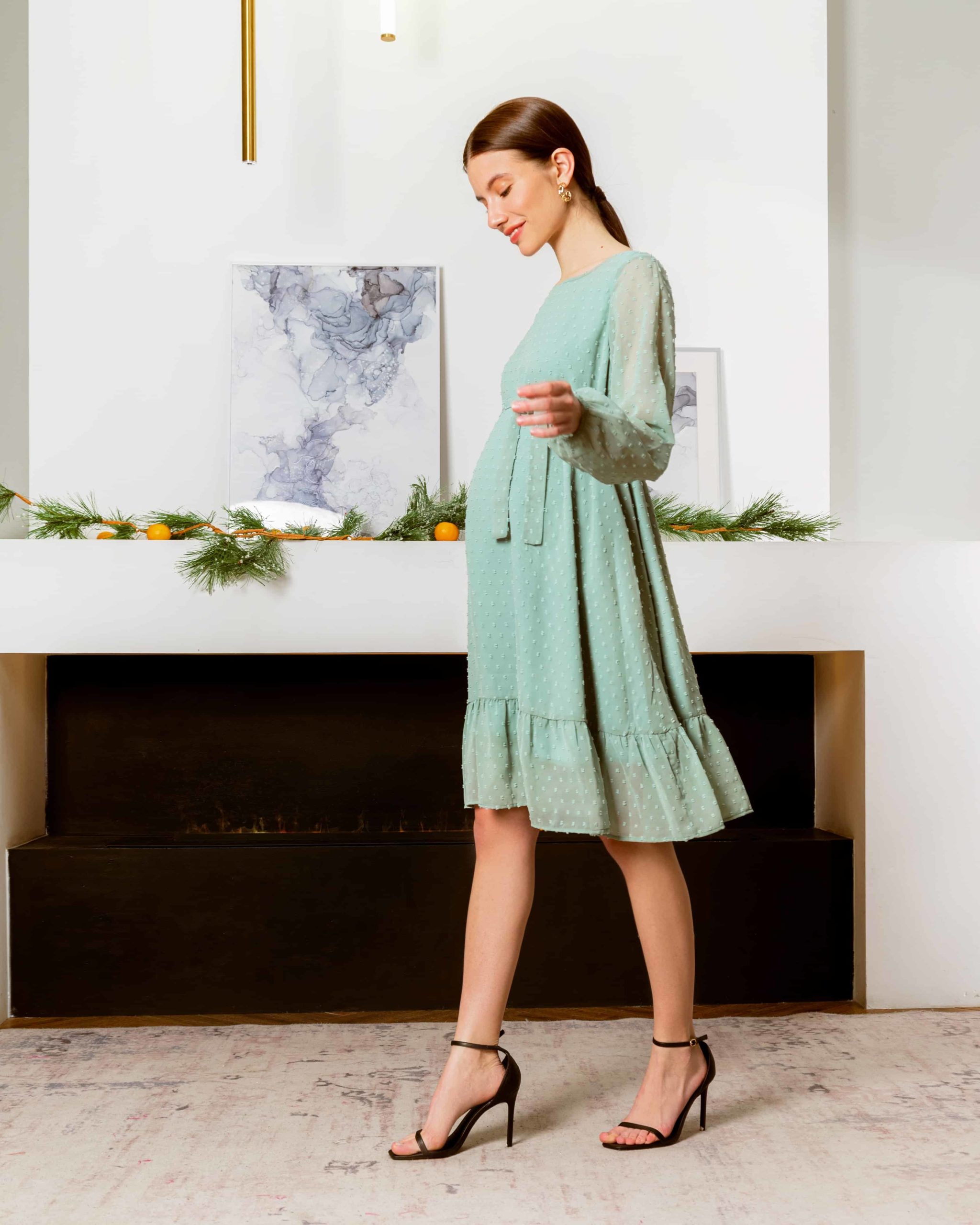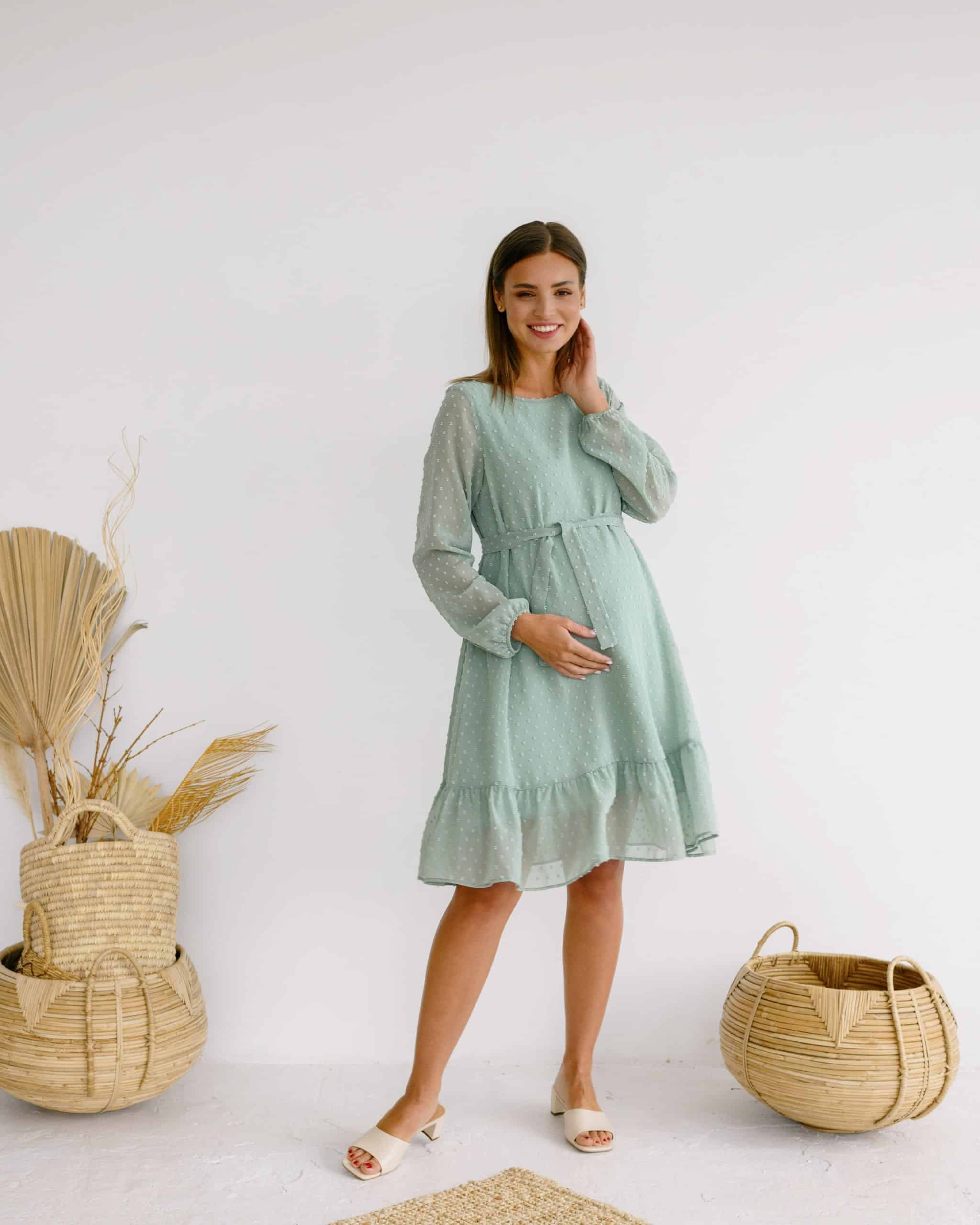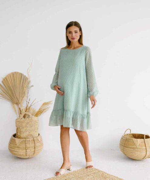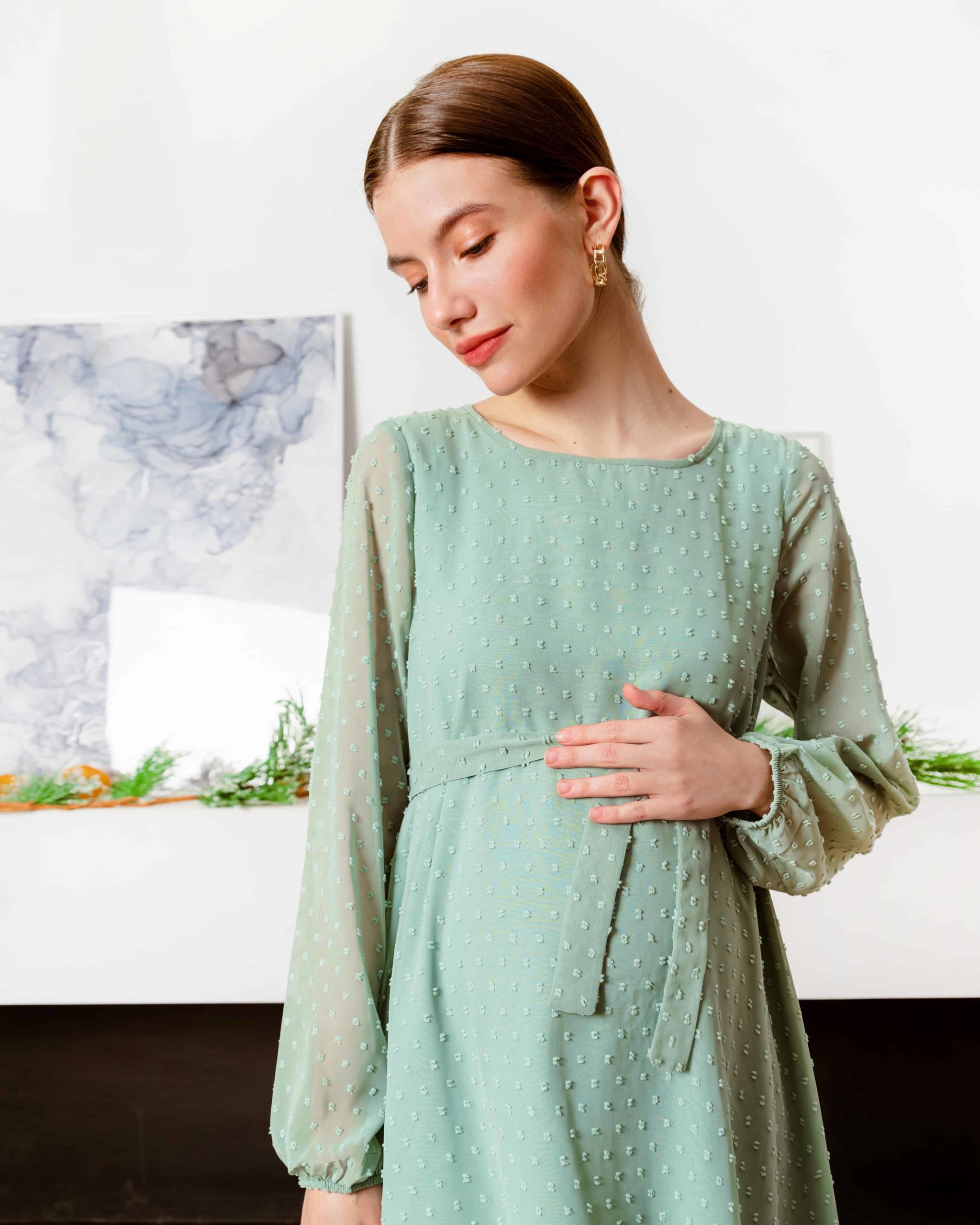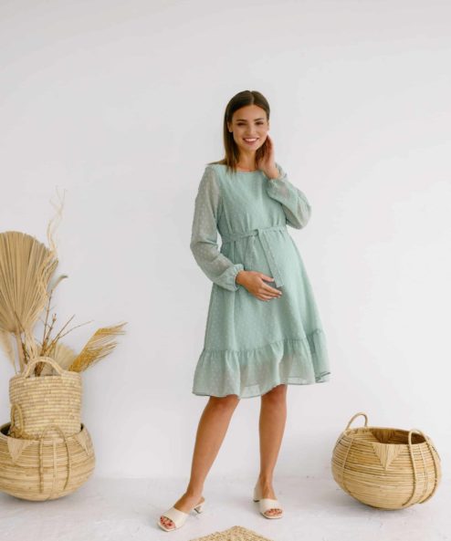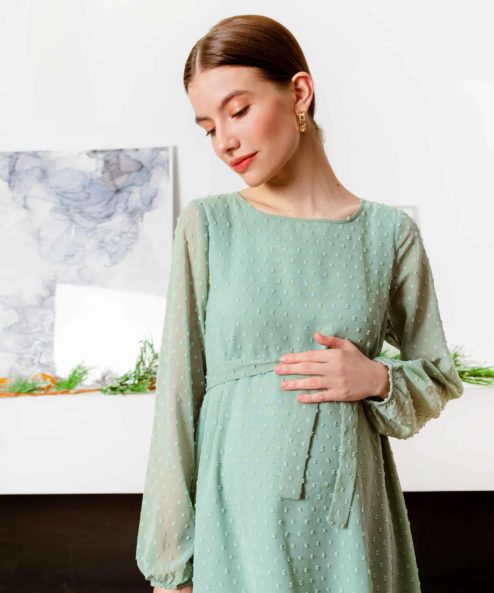 Фисташковое воздушное платье для будущих и кормящих мам Bellini
