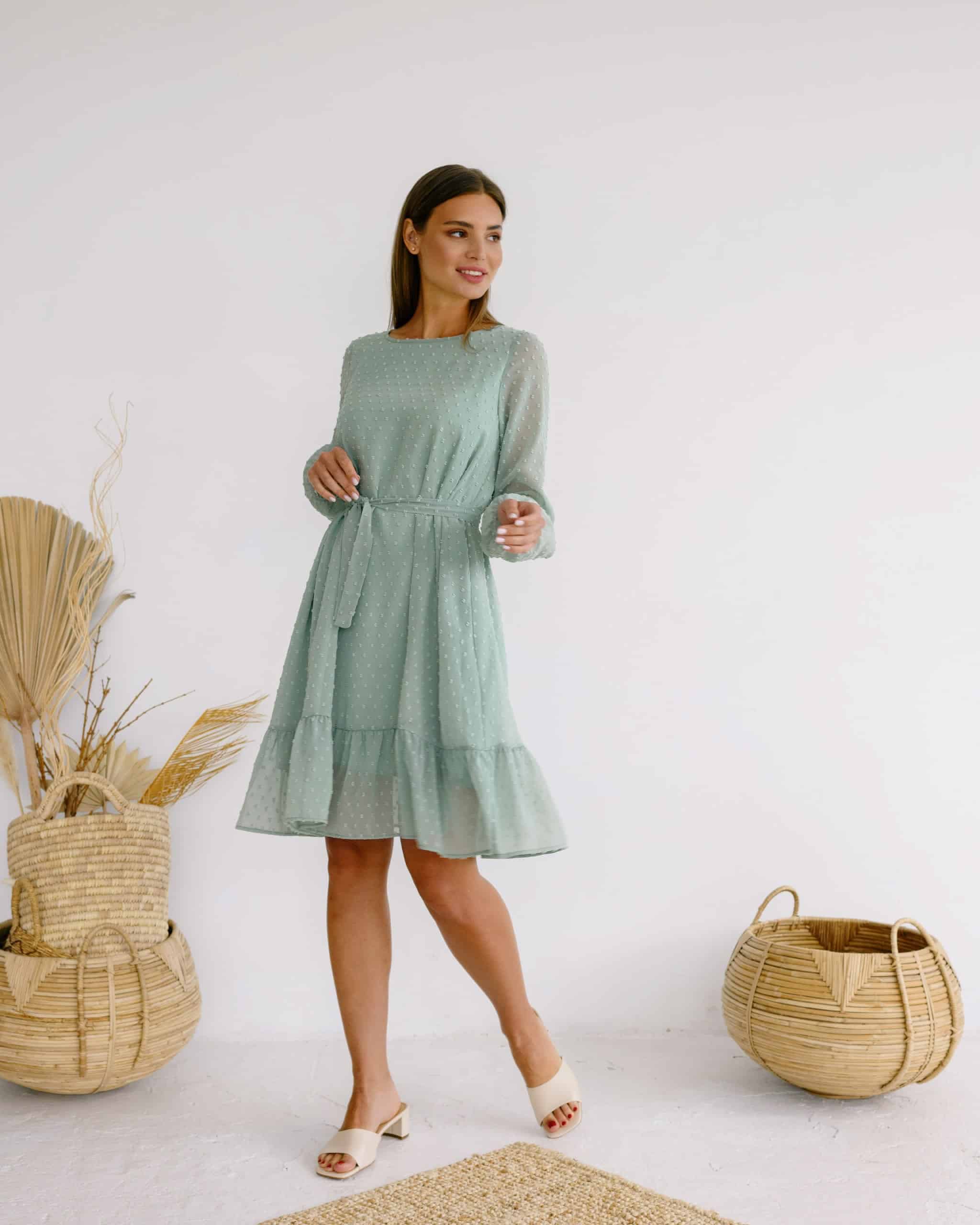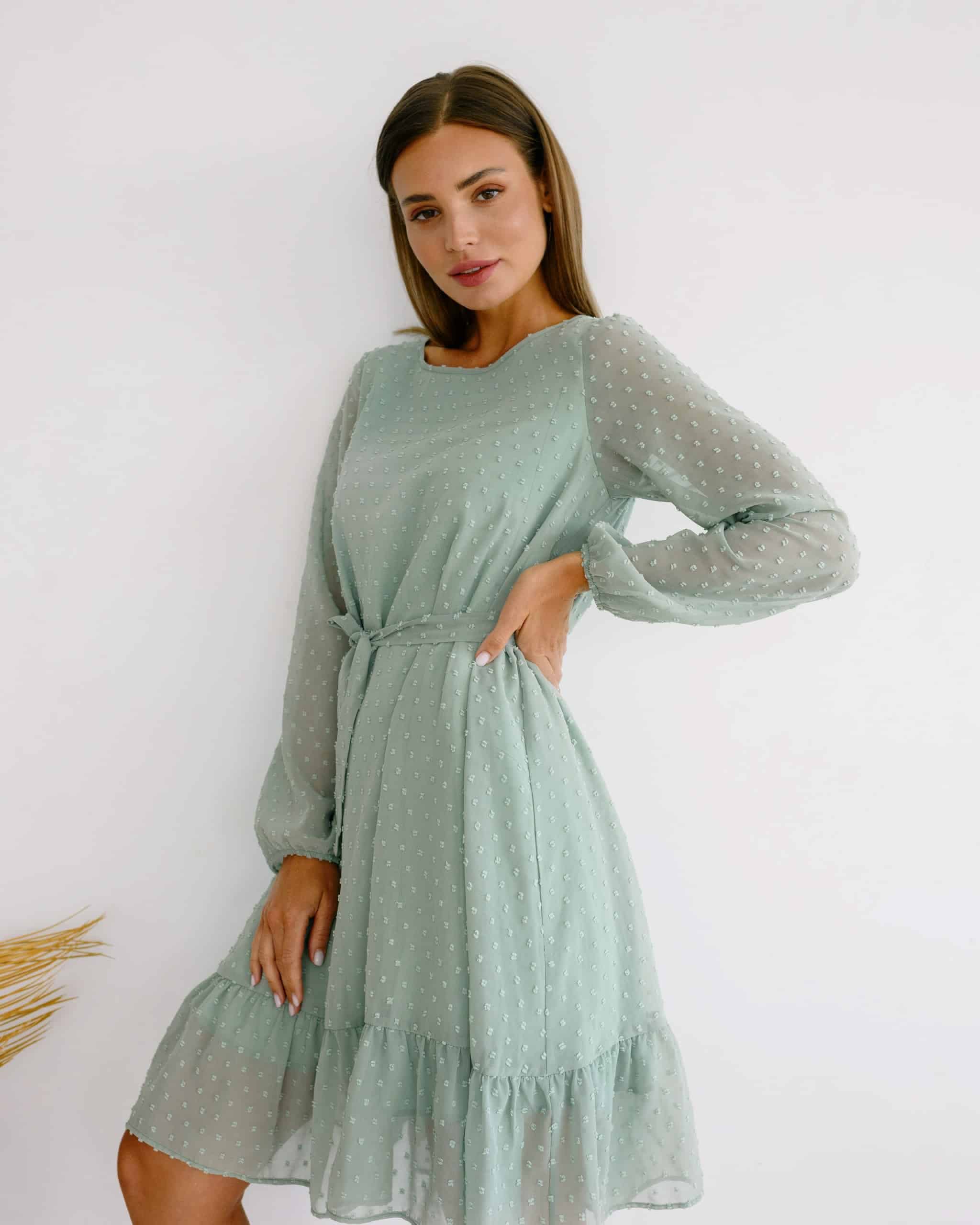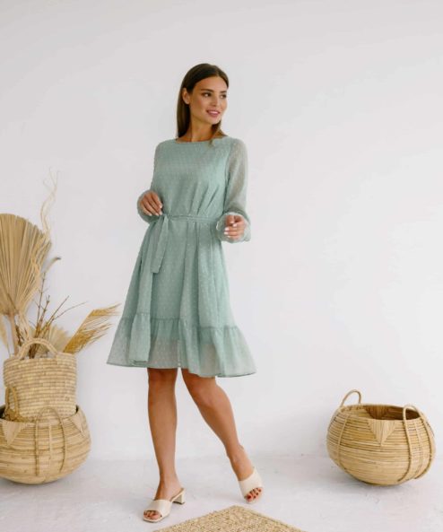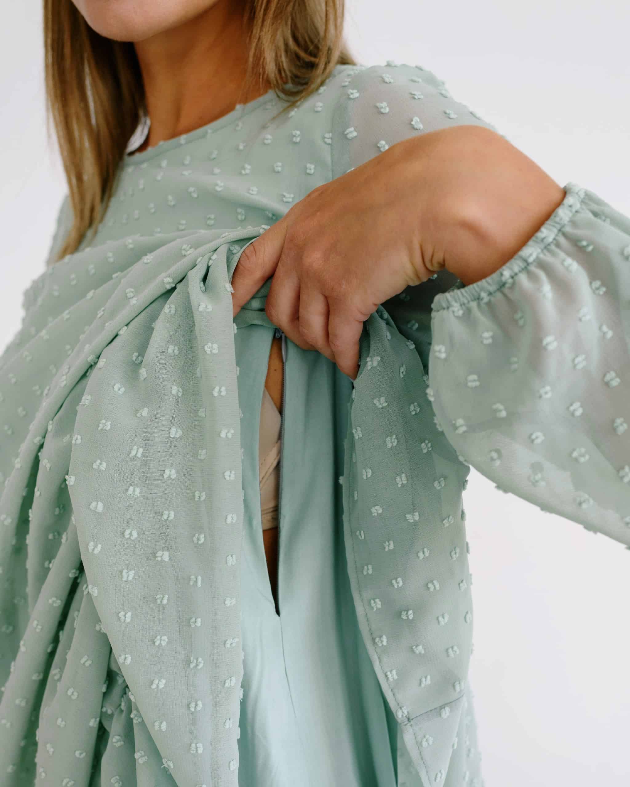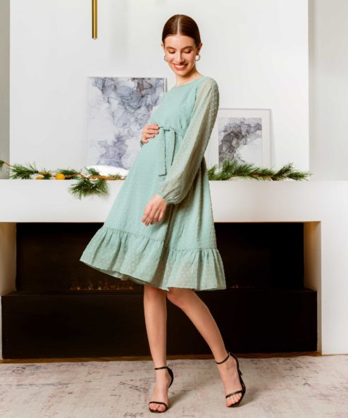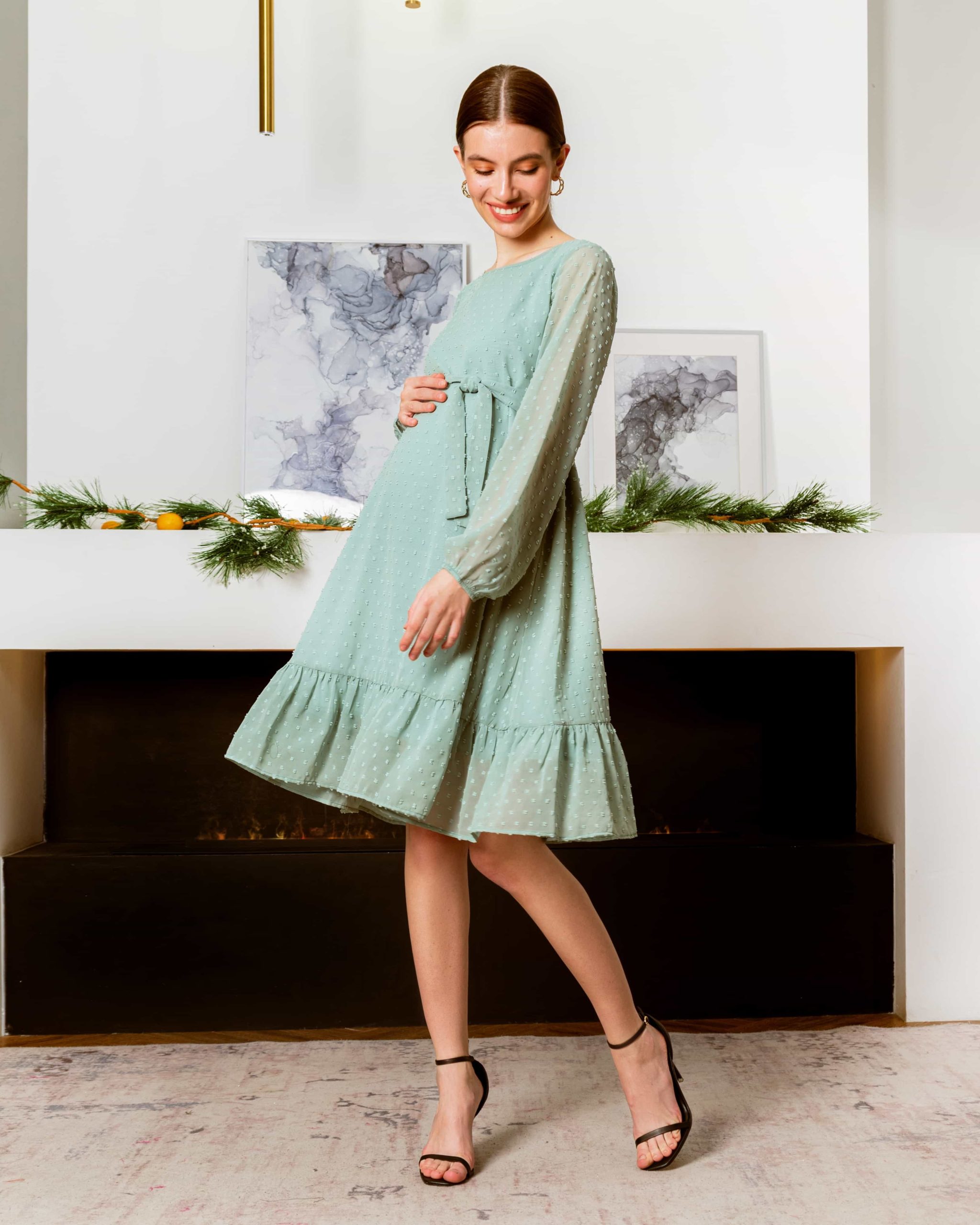 Фисташковое воздушное платье для будущих и кормящих мам Bellini
